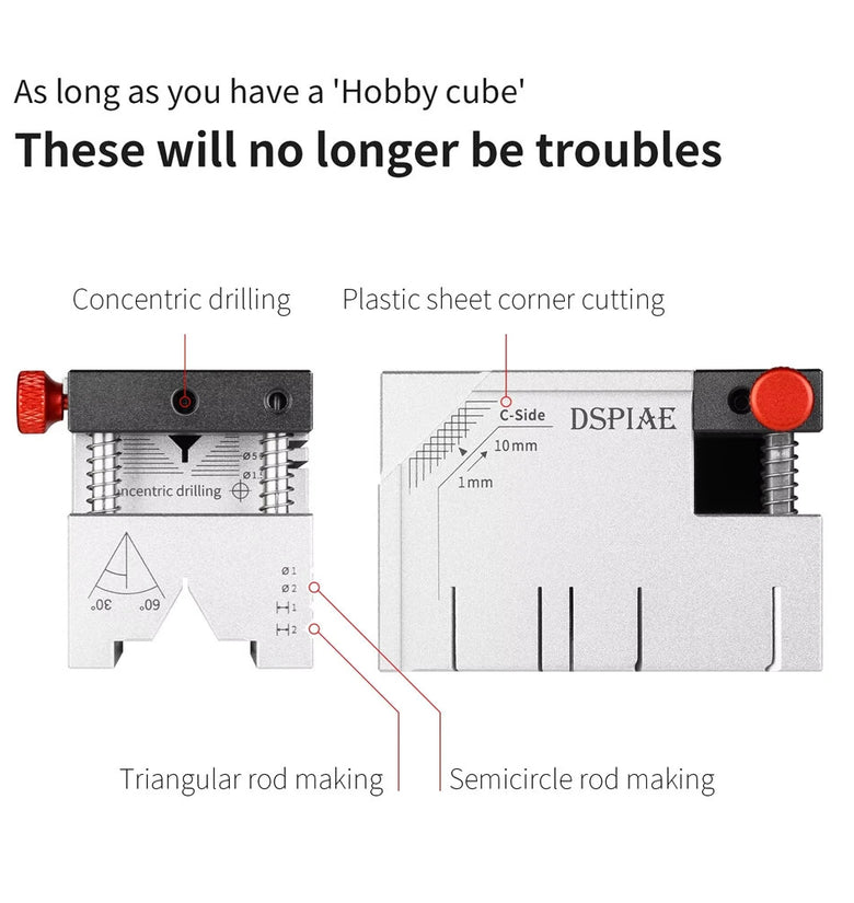 2.Versatile Cutting and Drilling Functions: Perform various tasks such as fixed-width cutting, perpendicular drilling, and bisecting plastic rods with easy-to-use configurations. Ideal for hobbyists handling complex designs.