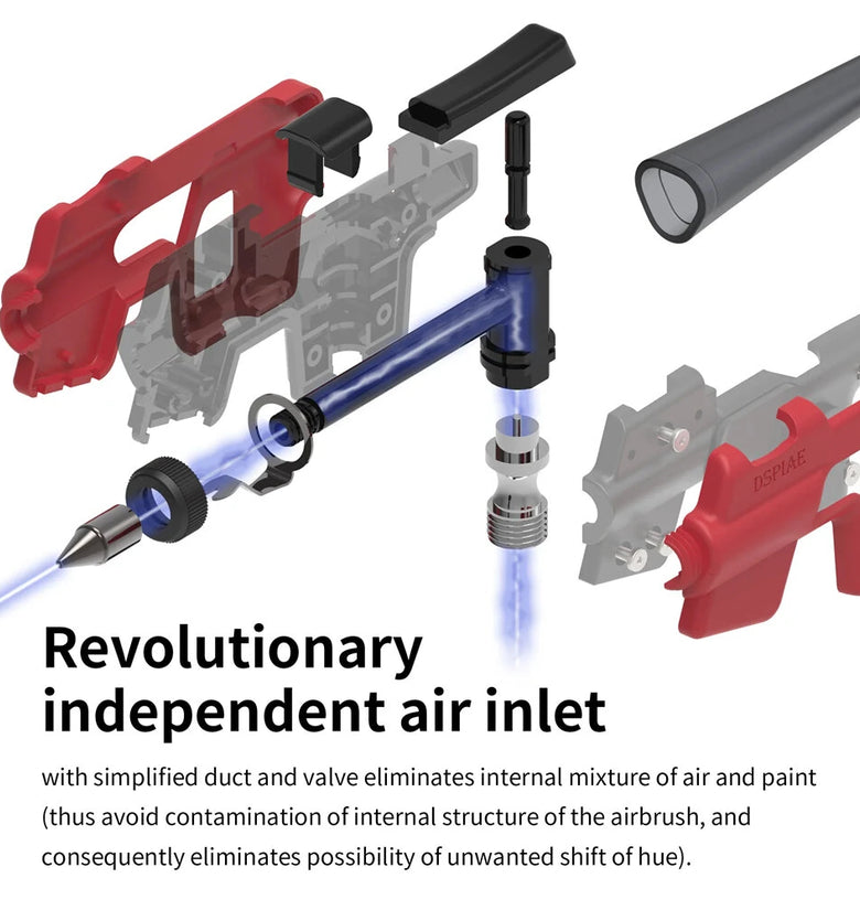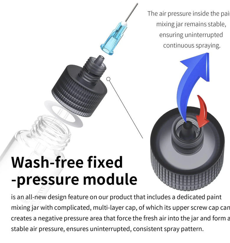 Eliminates internal mixing of air and paint, preventing contamination and preserving paint consistency for accurate hues.