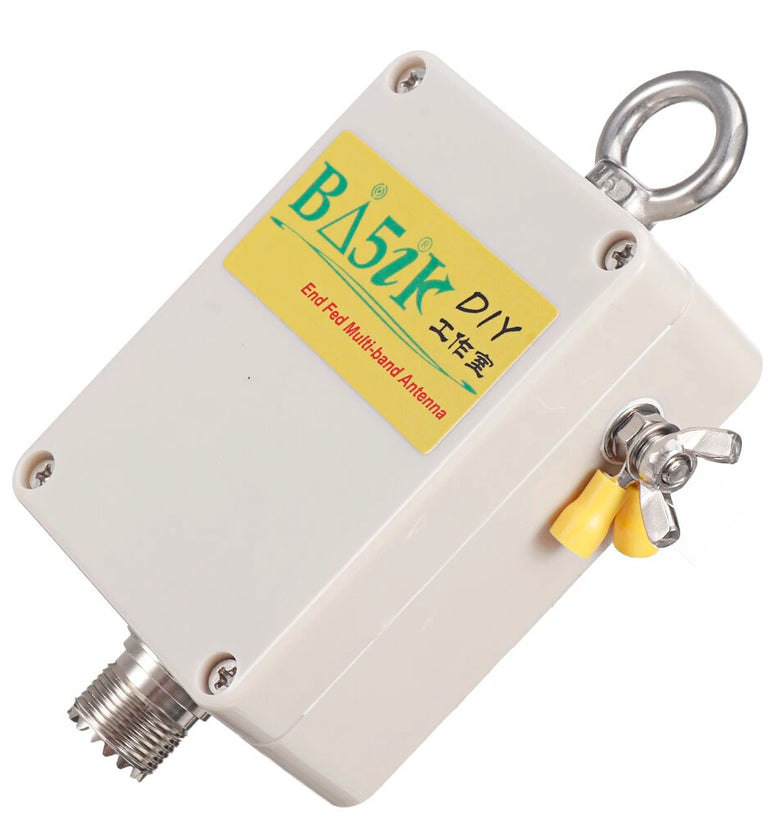 The advantage of the end-feeding balun is that the bandwidth and gain are both NO:~~1 in the natural resonant antenna. The disadvantage is that the loss is greater than the conventional balun. Therefore, the end-feeding balun cannot be used continuously for a long time, and the withstand power is 100WPEP (PEP). Is the peak power) Data communication 100W is double the peak power, remember to use the FM and data communication FT8 mode power halved!