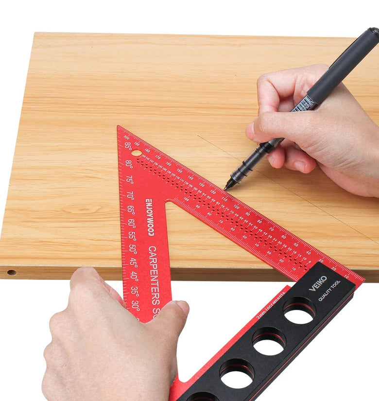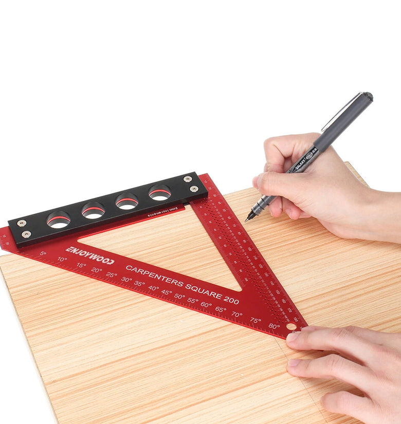 • ENJOYWOOD 200mm Aluminum Alloy Carpenter Square Triangle Ruler Woodworking Precision Hole Positioning Square