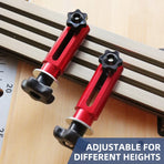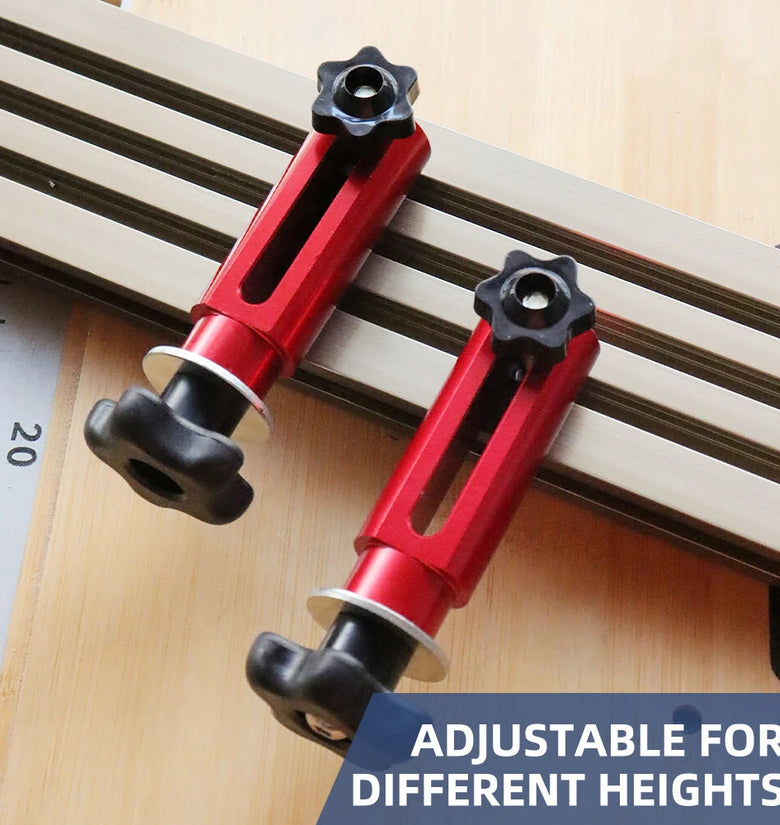 High Premium Material: 2 Pack T-Track Hold Down Clamp of high quality aluminium alloy material through surfaces sturdy, not easy to old and deform.Fixed and Stable: 2 Pack T-Track Hold Down Clamp is able to firmly fix the work piece, use this wood planer to firmly hold the workpiece and prevent the workpiece from tilting under your plane, it is very and reliable, and it is a practical woodworking tool.Fleixble Uses: T-Track Hold Down Clamp is suitable for high accuracy woodworking, can be felxibly applied to work in conjunction with engraving machine, table saw fence. Easy to operate, save effort and expand the use of the working at the same for time.Quick Setup: The hole can be adjusted according to demand. Easy to operate and use, improve work efficiency. Use two for dogs for wide boards or cross-grain work, the stop can slide on the fence, fits all kinds table surface.