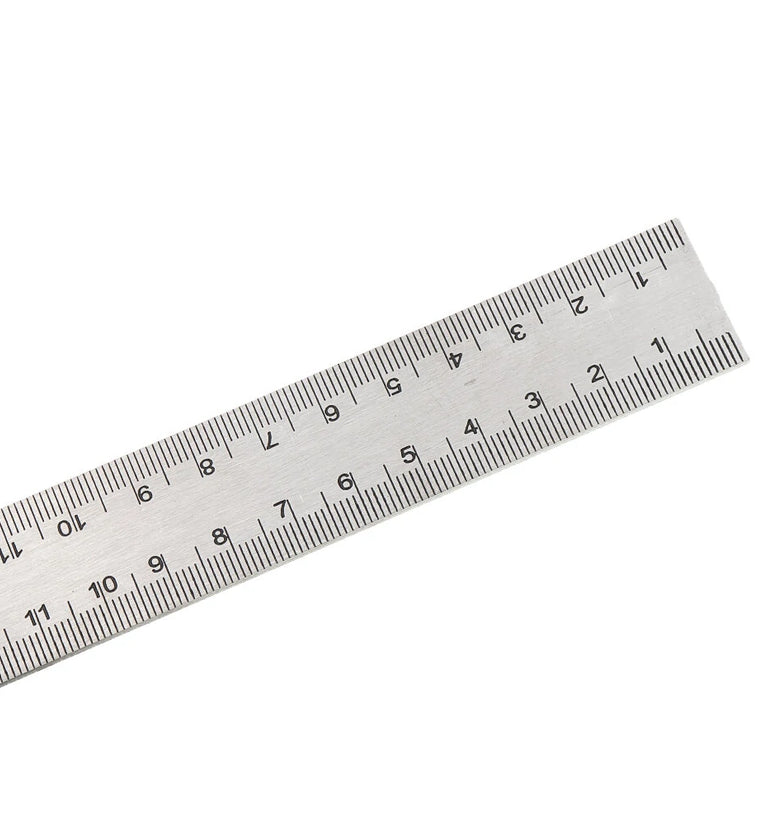 - 2mm-thick stainless steel ruler, double-sided scale.