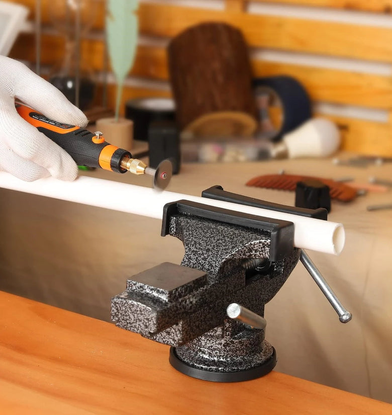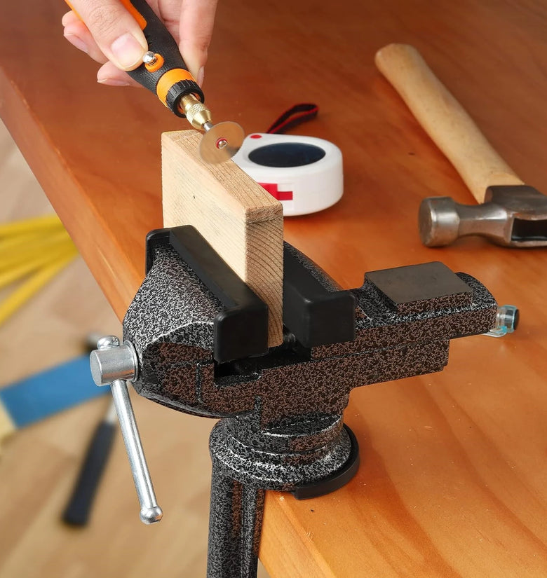 2. Solid Construction: Crafted from high-quality cast steel and weighing up to 1.85kg, this vise is built to hold a wide variety of materials firmly, aiding in tasks such as cutting, grinding, polishing, and cleaning.