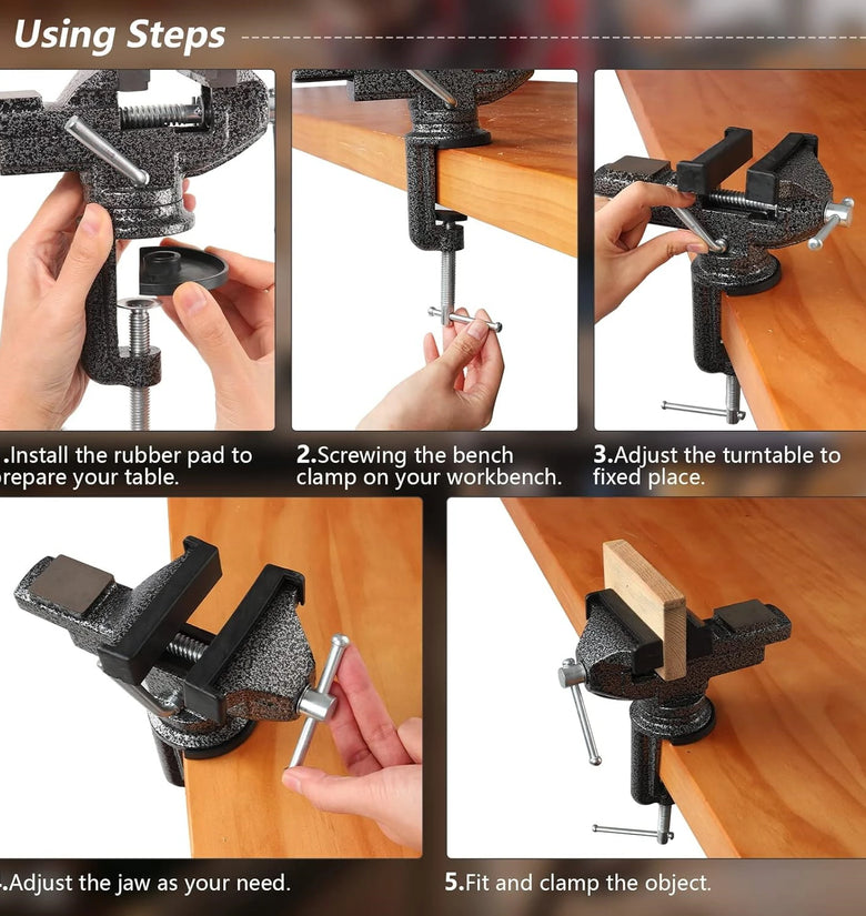 1. Universal Bench Clamp: Designed with a maximum jaw width of 80mm and clamp thickness of 62mm, this bench vise is suitable for most handcraft projects, providing an ideal solution for small DIY tasks.