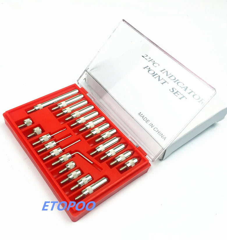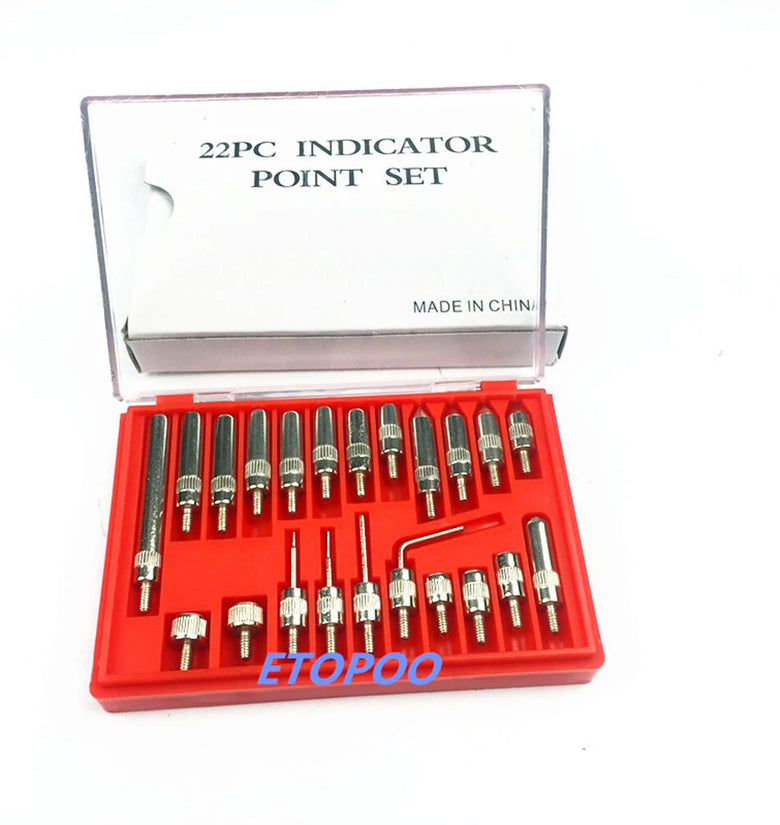 22Pcs 4-48 Thread Tip For Dial & Test Indicators Steel Dial Indicator Point Set Feature:A complete set of 22 different points, increasing the versatility of your indicators.AGD specifications (M2.5 thread).High strength and hardness.Durable in use.Fits most American and import indicators. Specification:Material: SteelColor: SilverSize of box: Approx. 92*60*15mmQuantity: 22pcsType: Imperial / Metric Package included:1 x Indicator Point Set (Type as your choice) Attention:Due to different Monitor, the color may have differenceDue to hand measure ,Please allow 1-3% difference toleranceDue to long shipping, the item may damage in transit, if the item damage, pls contact us firstly immediately before leave feedback, thanks for your understanding