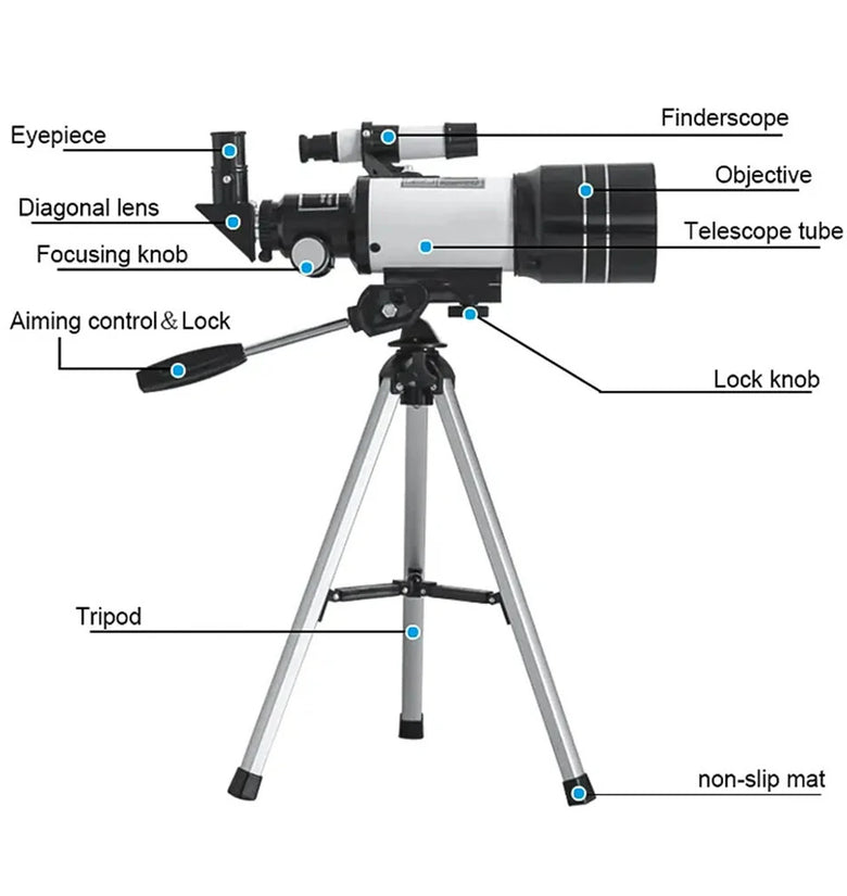 Tripod Included: Stabilize your viewing experience with our included tripod. Its adjustable height and sturdy construction provide a reliable platform for astronomical observation.