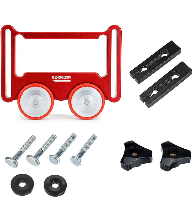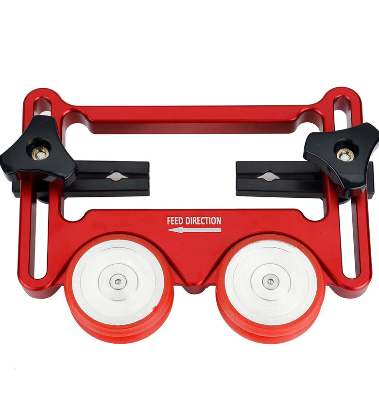 Features:The rubber wheel widening design is adopted to prevent skidding. It is equipped with springs to ensure that the guide wheel can independently exert uniform compression force on the wood during the dynamic sawing process