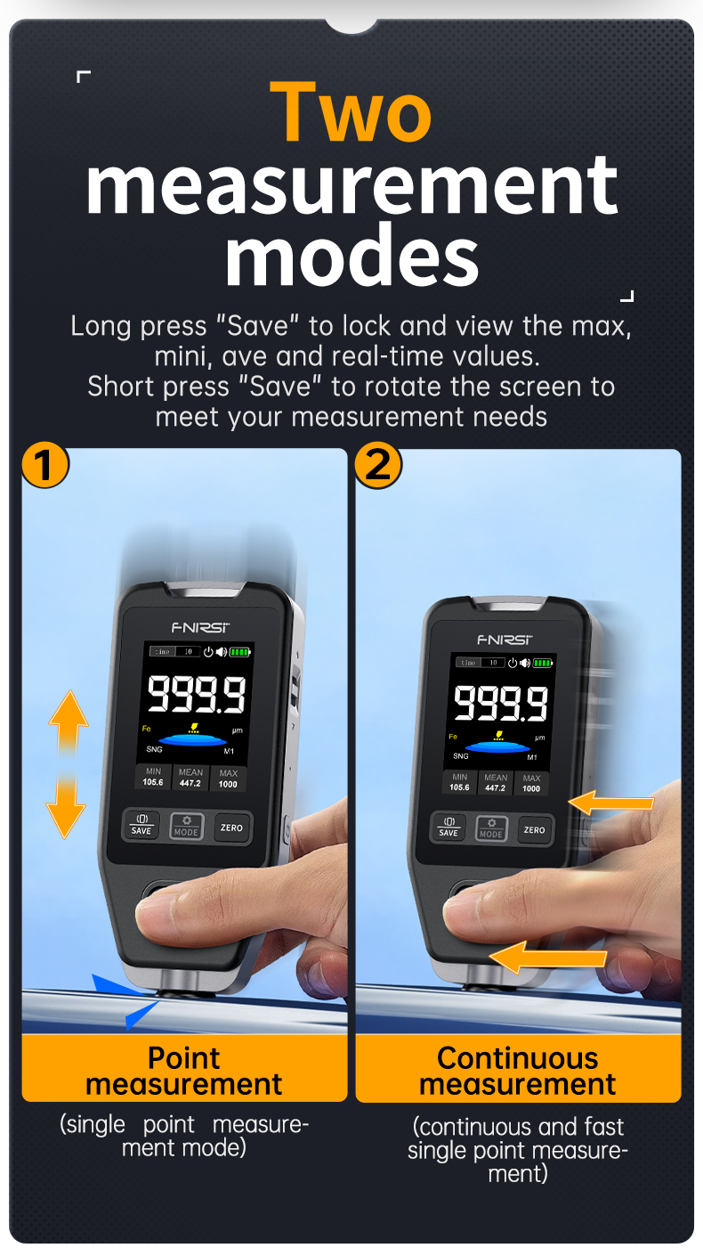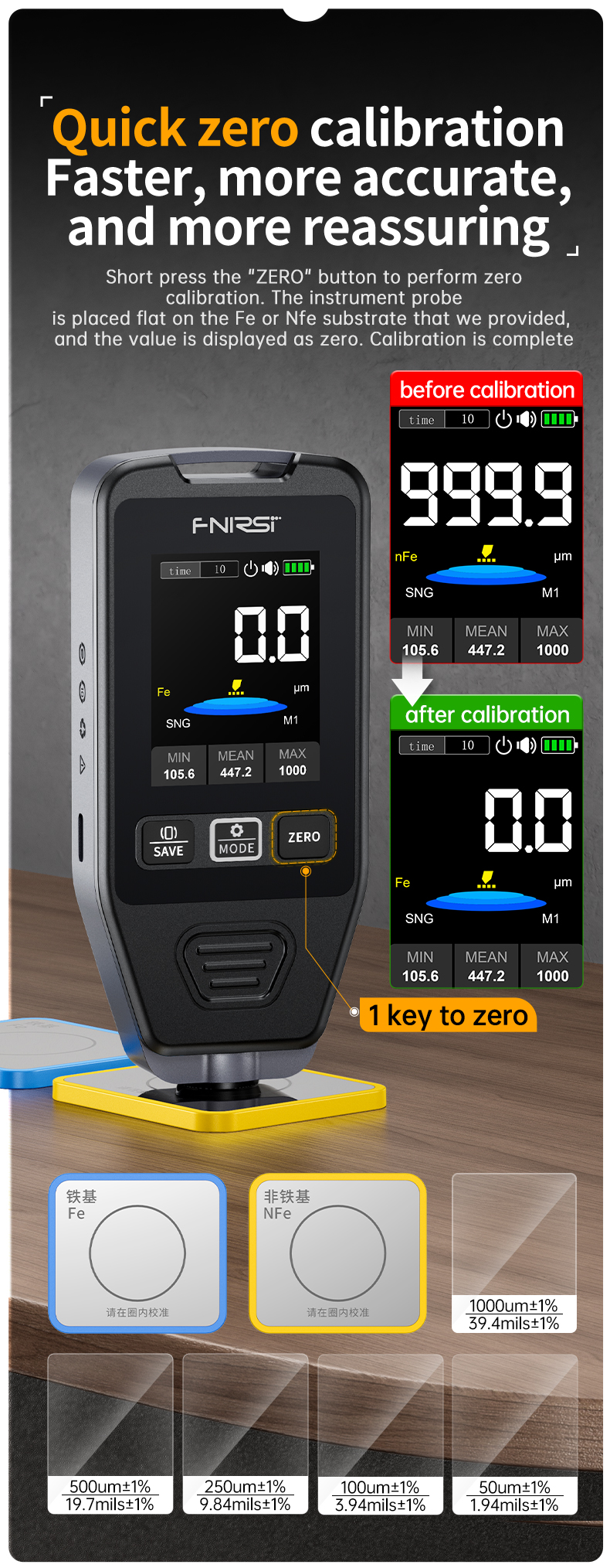 High Precision Measurement: Capable of measuring thicknesses from 0 to 1400μm with an accuracy of ±3% + 2μm, ensuring precise results in various coatings.
