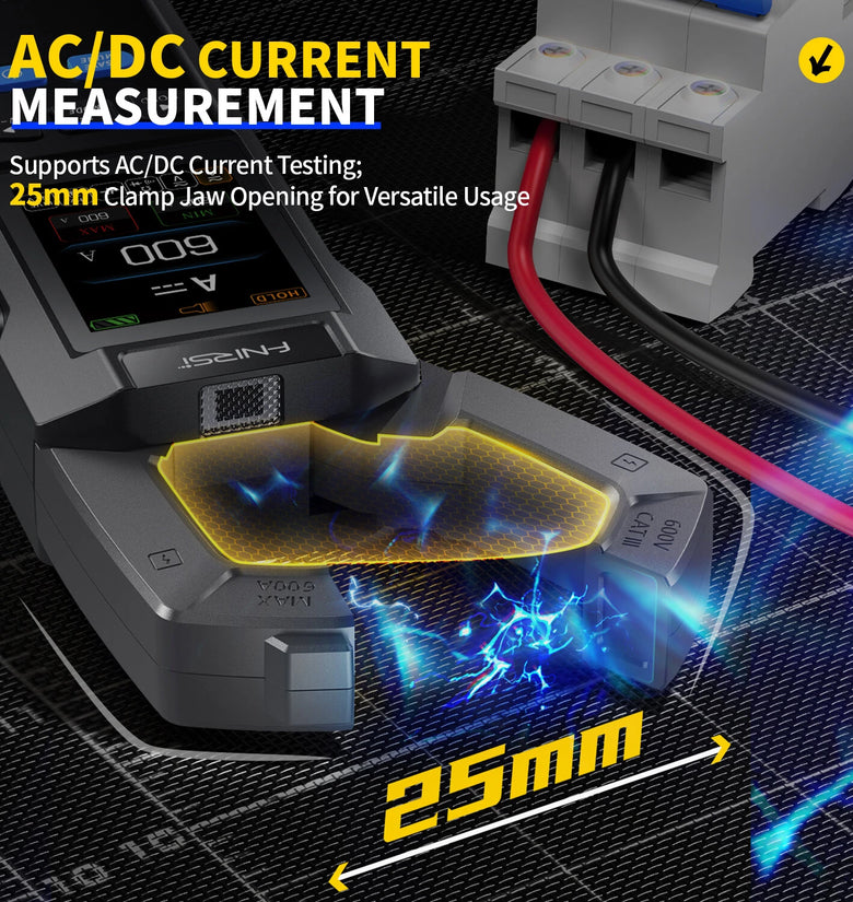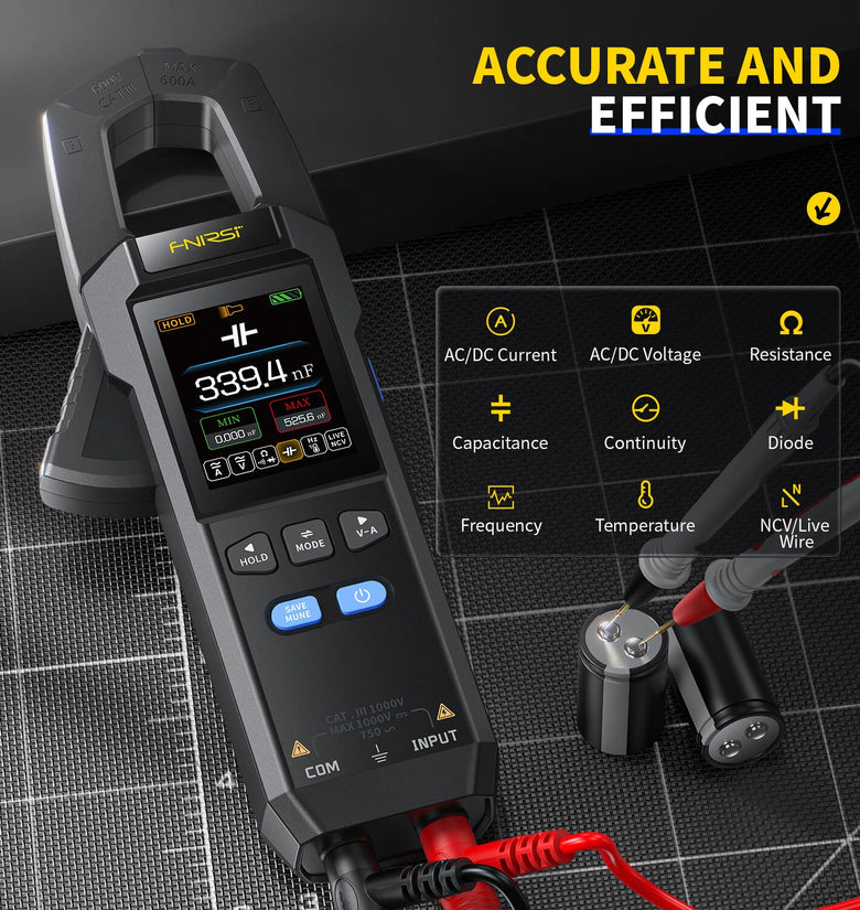 Wide Voltage and Current Range: Measures up to 750V for AC and up to 600A for DC, covering an extensive range for various electronic tasks.