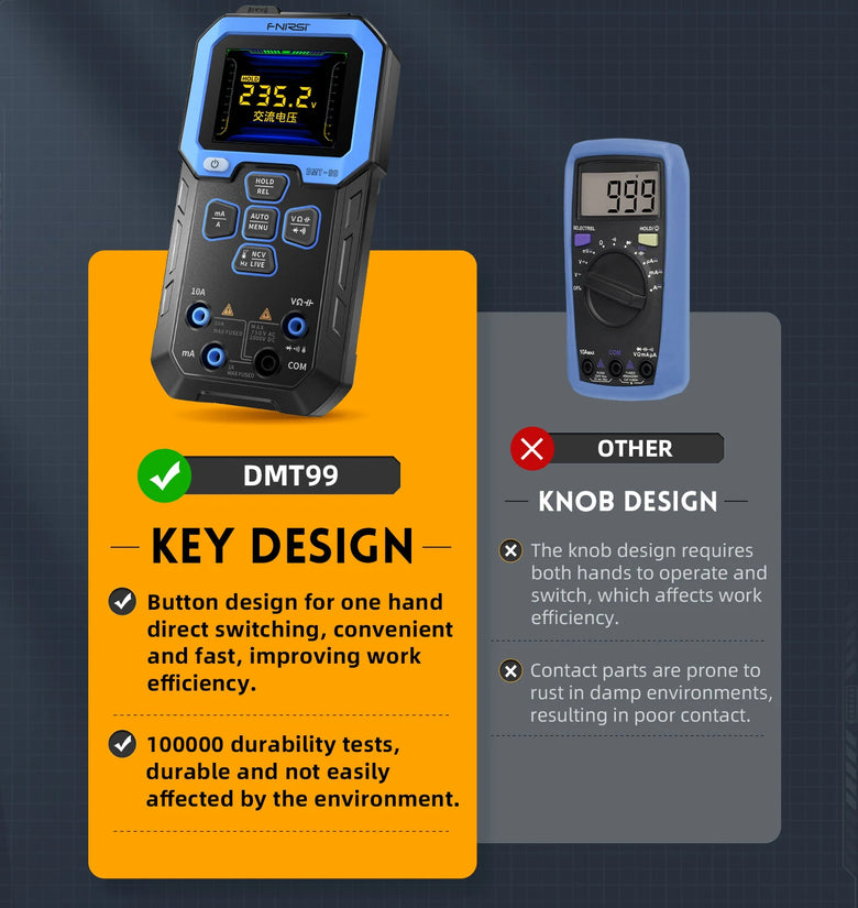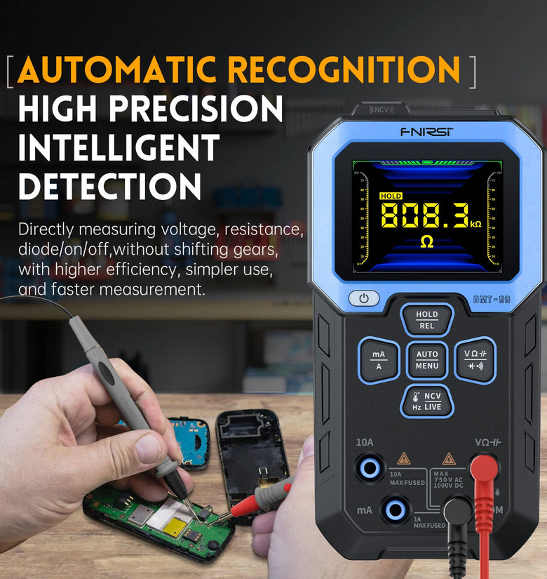 • FNIRSI DMT-99 Digital Multimeter 9999 Counts Smart Professional Tester 1000V 10A True RMS Auto Range AC DC Ohm Hz Capacitance