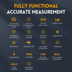 Multiple Measurement Modes: This device offers a variety of measurement modes, including automatic, voltage, resistance, diode/on/off, capacitance, current, frequency, temperature, NCV induced voltage, and LIVE zero live wire.