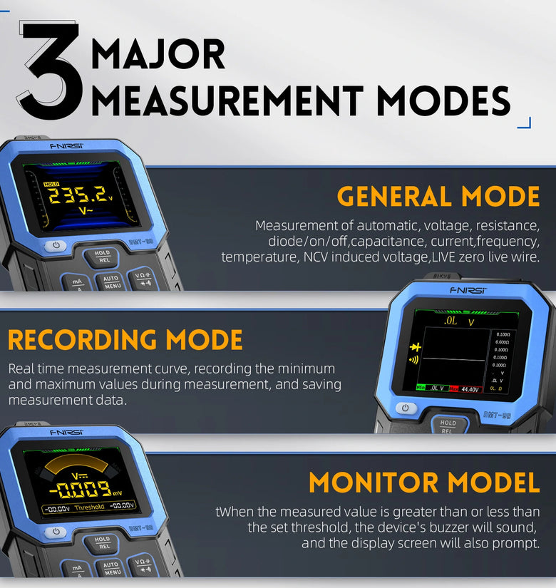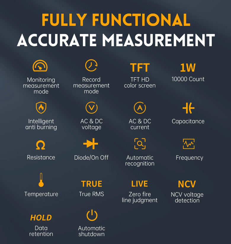 Intelligent Automatic Recognition: This device can automatically recognize and measure voltage, resistance, and diode/on/off without needing to shift gears. This gives you higher efficiency, simpler use, and faster measurements.