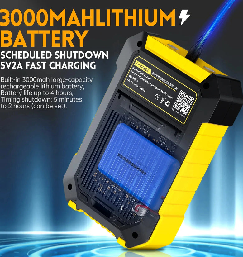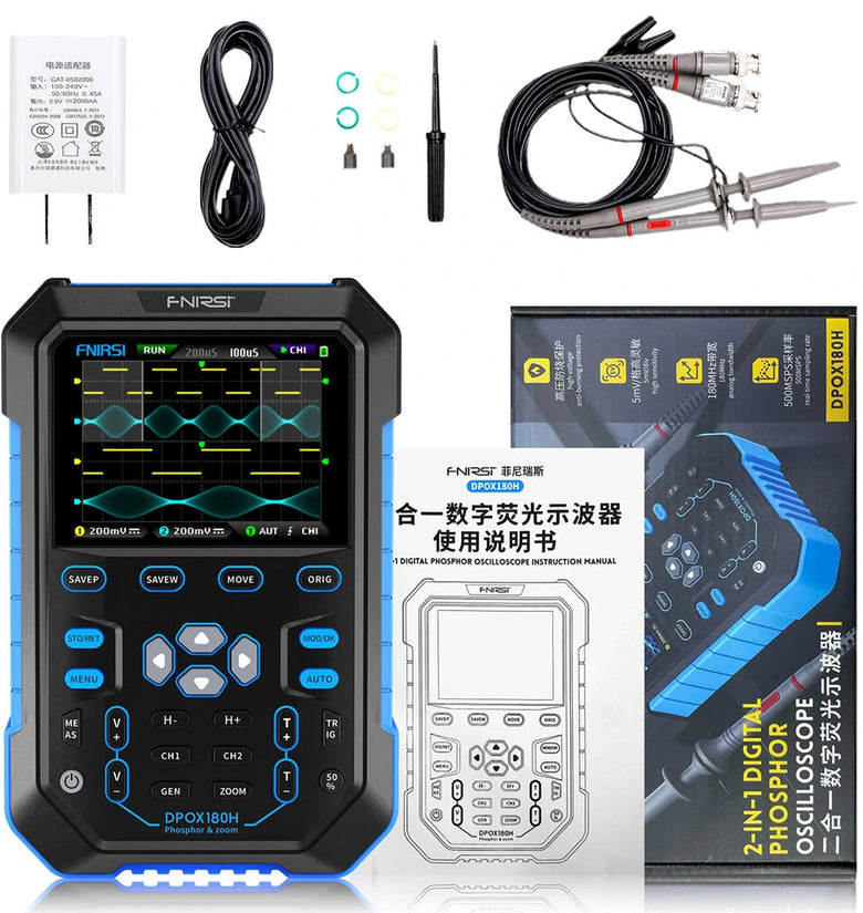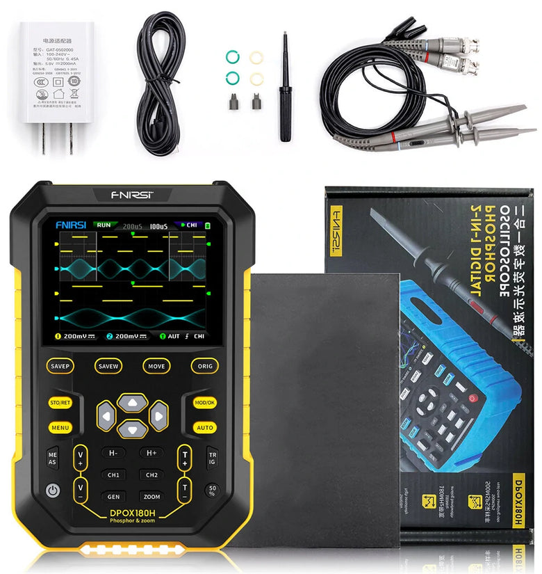 • FNIRSI DPOX180H Handheld Dual Channel Digital Oscilloscope 180MHz-3DB 2 In 1 Function Signal Generator Fluorescence Display ZOOM