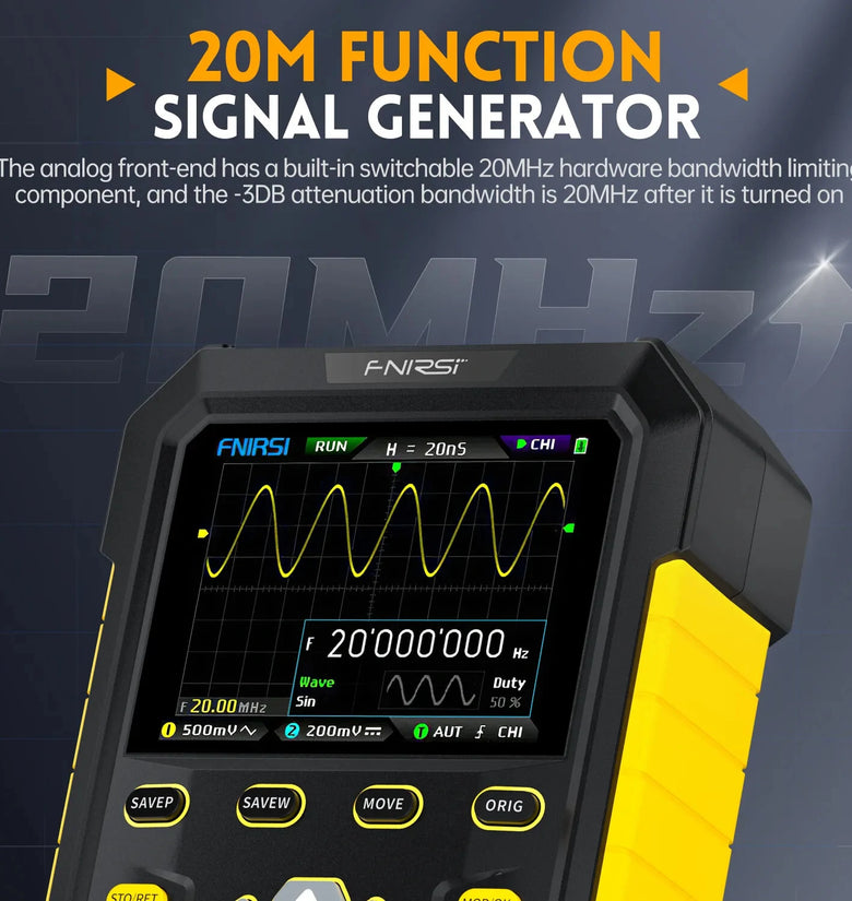 High-Definition Display and Intuitive Interface: With a 2.8-inch IPS full view screen, this oscilloscope offers sharp visuals, enabling users to capture and analyze waveforms with ease. The clarity of the display ensures that you don't miss even the smallest detail. Moreover, its integrated 20M hardware ensures optimal performance.