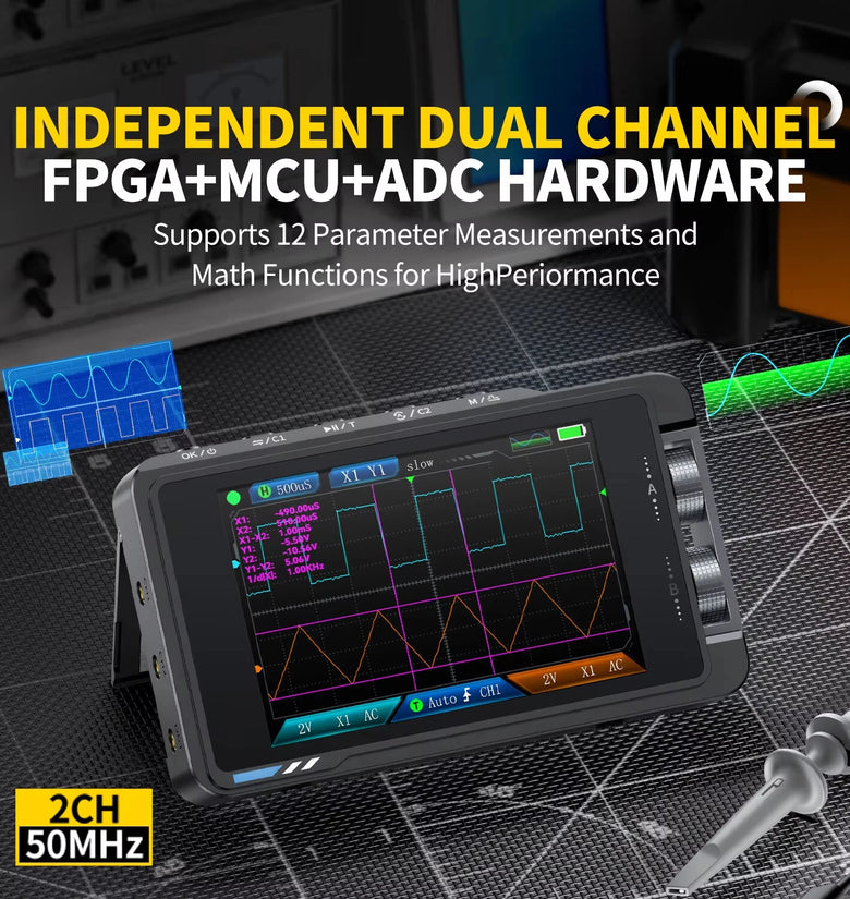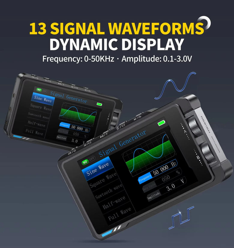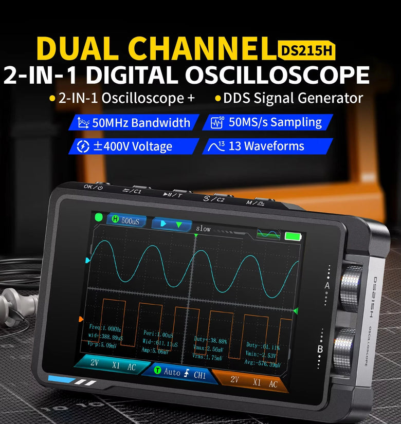 • FNIRSI DS215H 2 in 1 Digital Oscilloscope 50MHz Bandwidth 250MSa/s Dual Channel Portable with Signal Generator