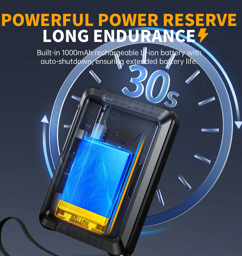 Battery Life: Built-in 1000mAh lithium battery supports up to 4 hours of continuous use.