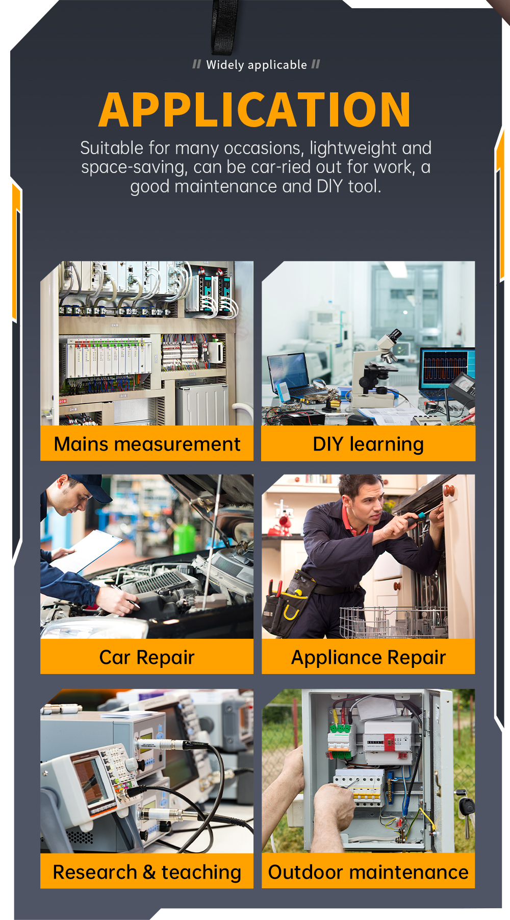 Multiple Measuring Functions: Offers various measurement capabilities, including frequency, amplitude, and rise time, catering to diverse electronic testing needs.