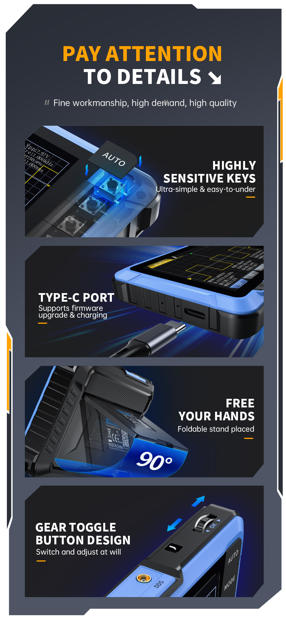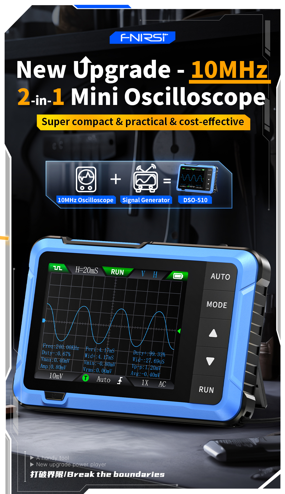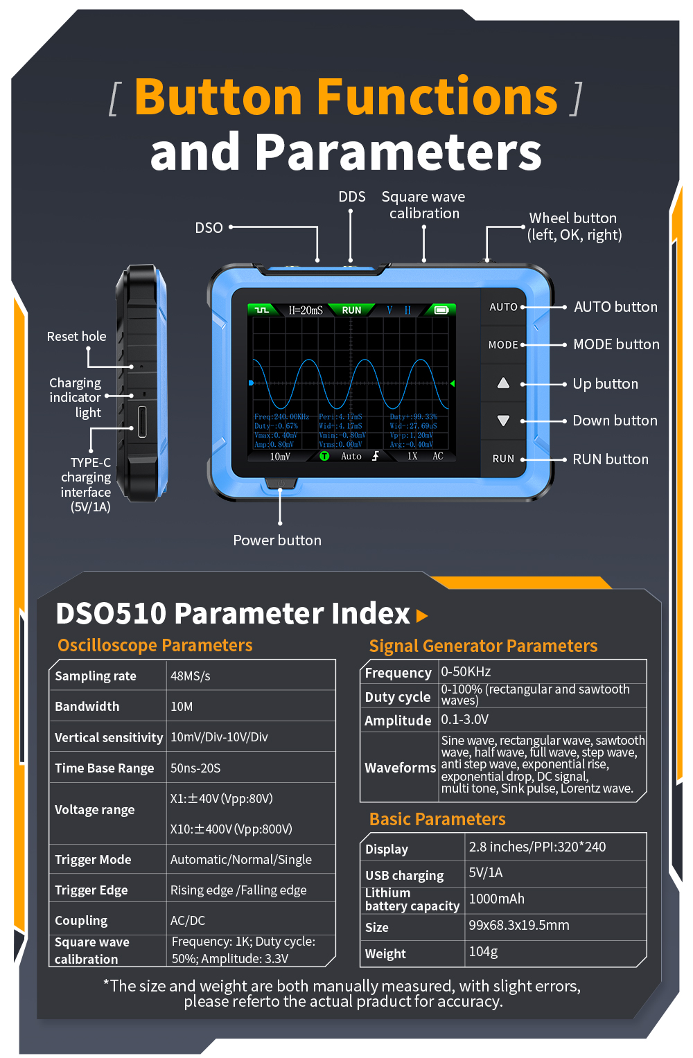 Portable Design: Compact and lightweight, the DSO510 is designed for portability, making it ideal for on-the-go professionals and fieldwork.