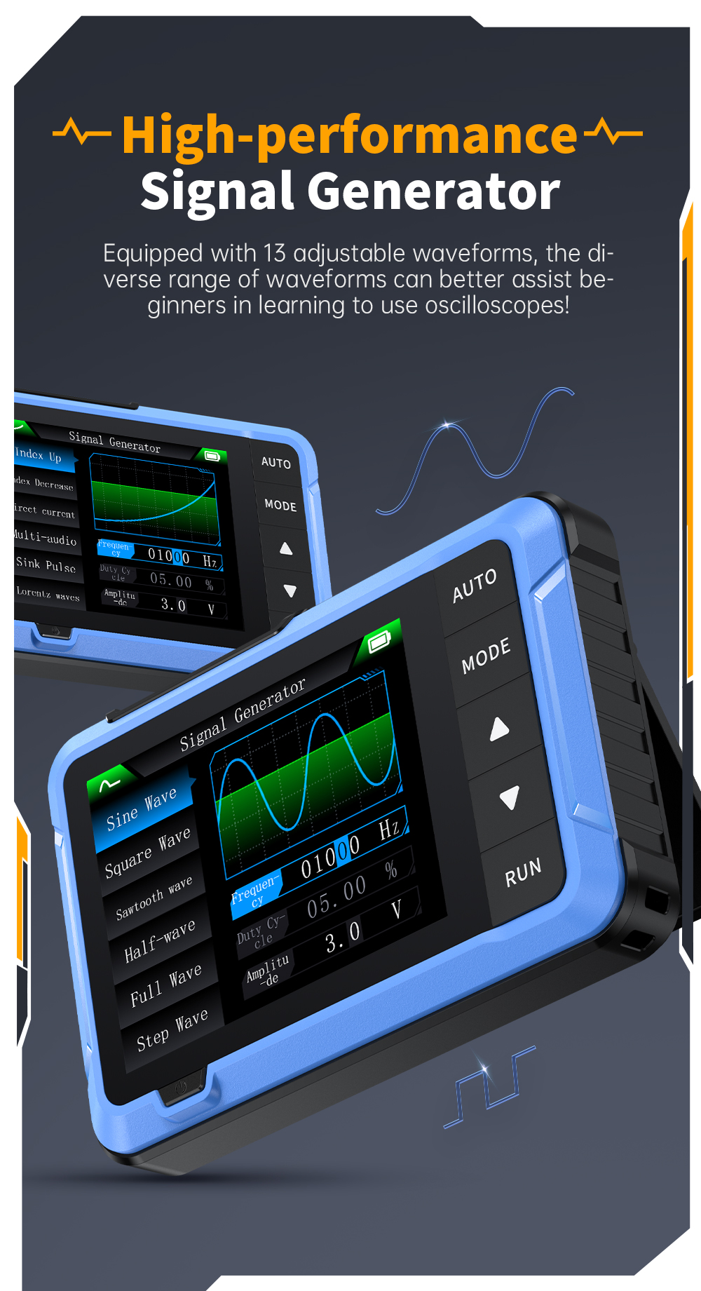 One-Click AUTO Mode: Displays waveforms instantly without complex adjustments.