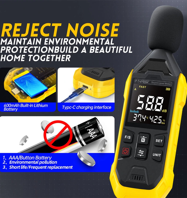 Real-Time Digital Display: Get instantaneous readings with a high-resolution digital display, showing results at a sampling rate of 2 times per second. Each scale represents 2dB, ensuring clarity in every measurement.