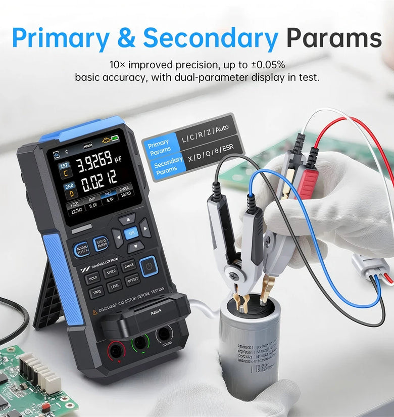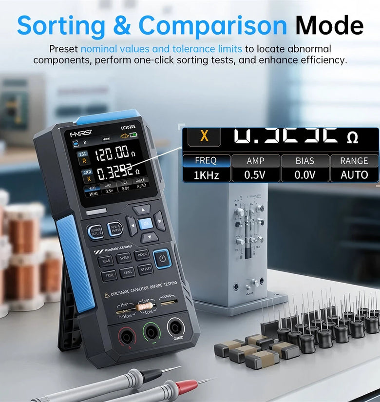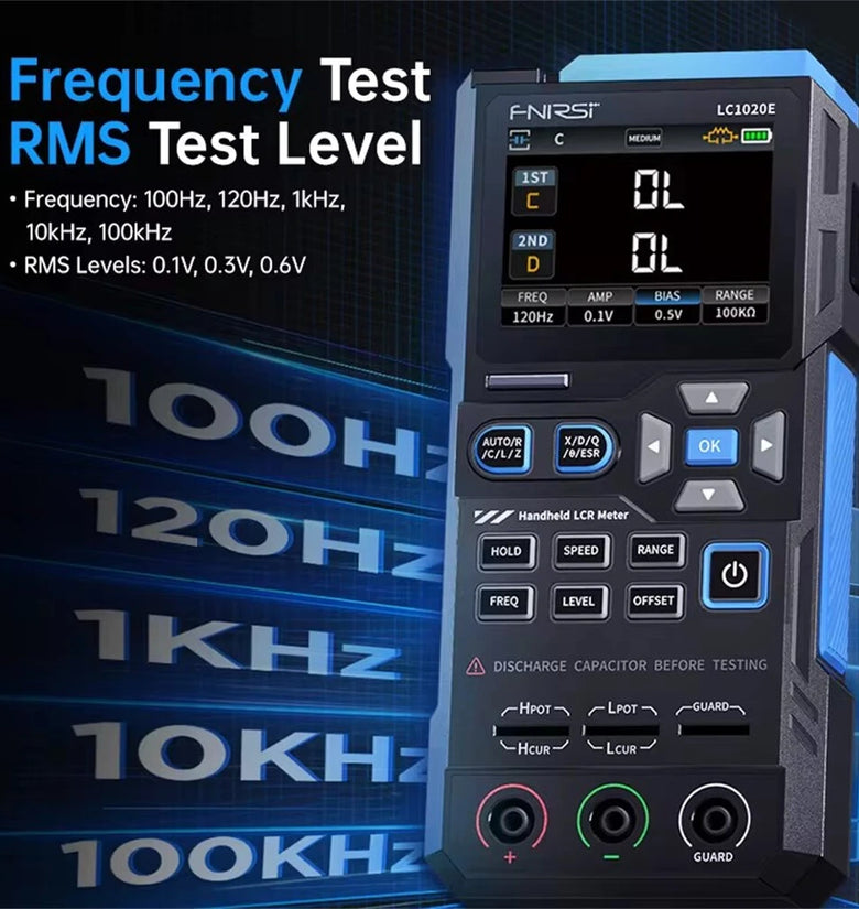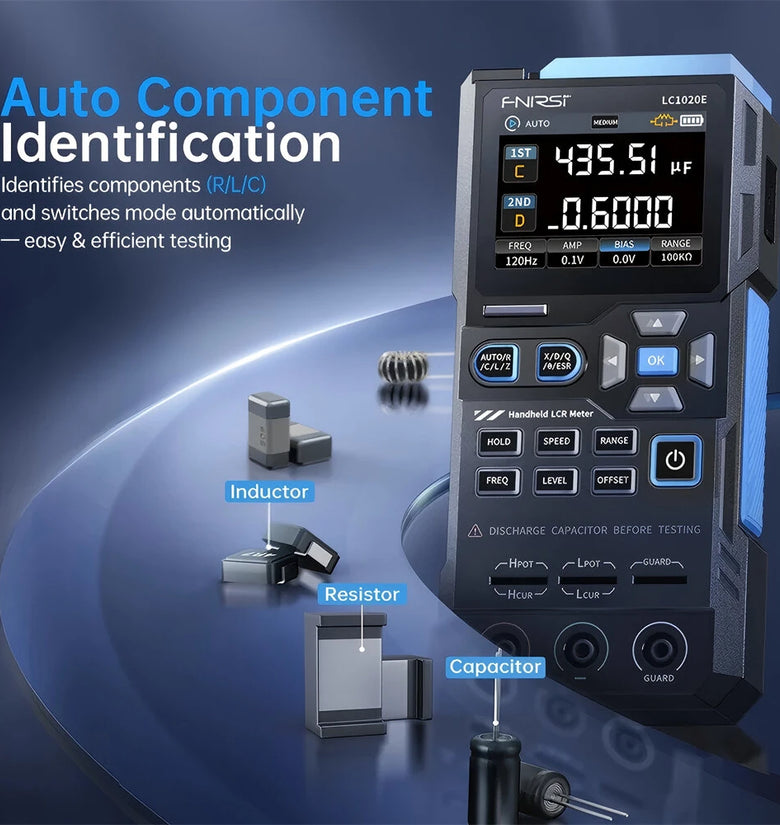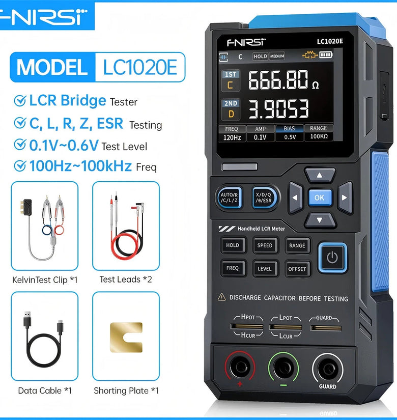 • FNIRSI LC1020E Handheld LCR Bridge Tester 100Hz to 100kHz Precision Frequency Auto Calibration Dual Parameter Display USB Type-C Accurate Capacitance Resistance Inductance Measurement Tool