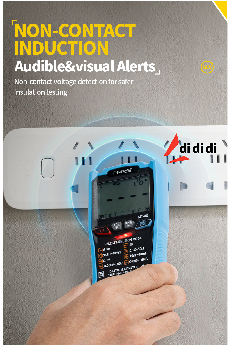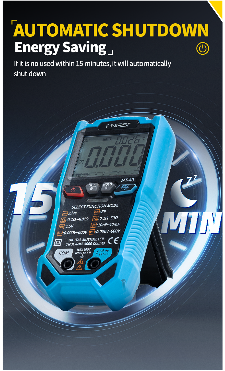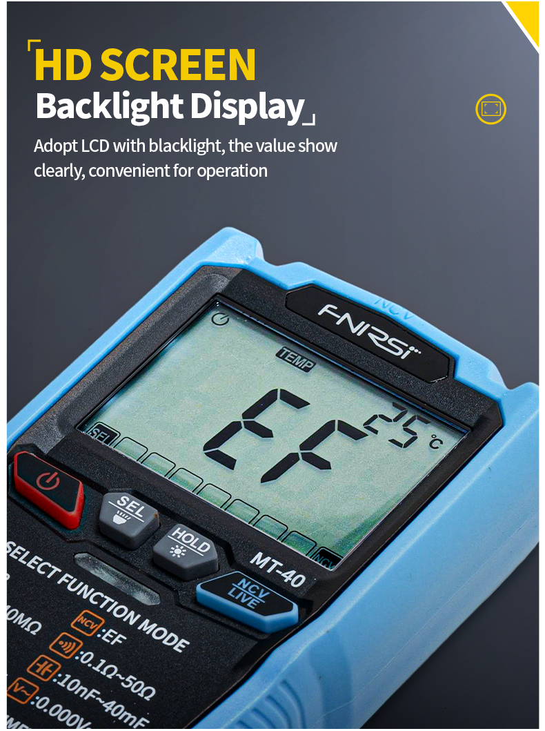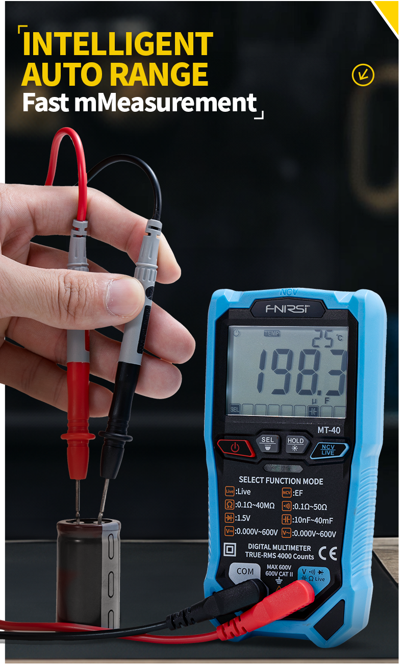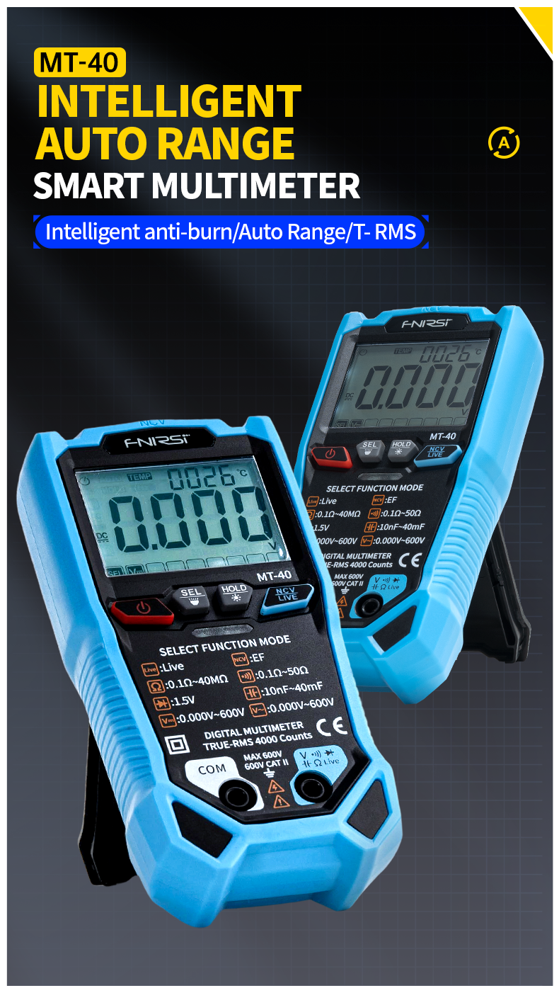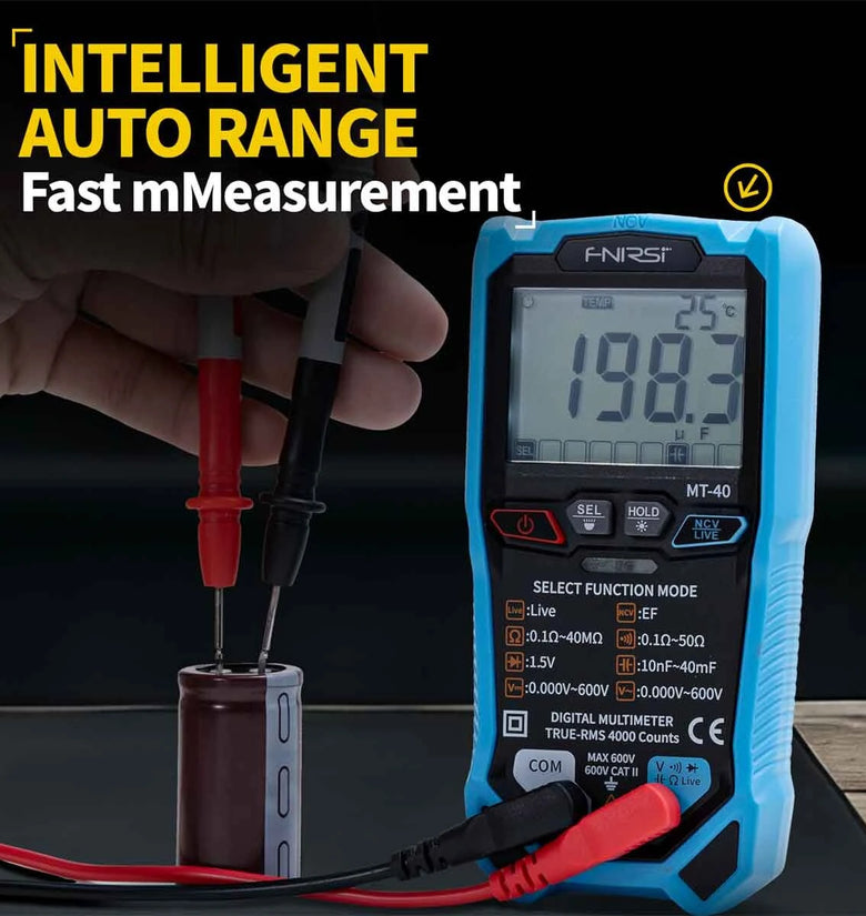 • FNIRSI MT-40 Smart Digital Multimeter True RMS Auto Range 600V High Precision with Backlit LCD Diode Testing Overload Protection