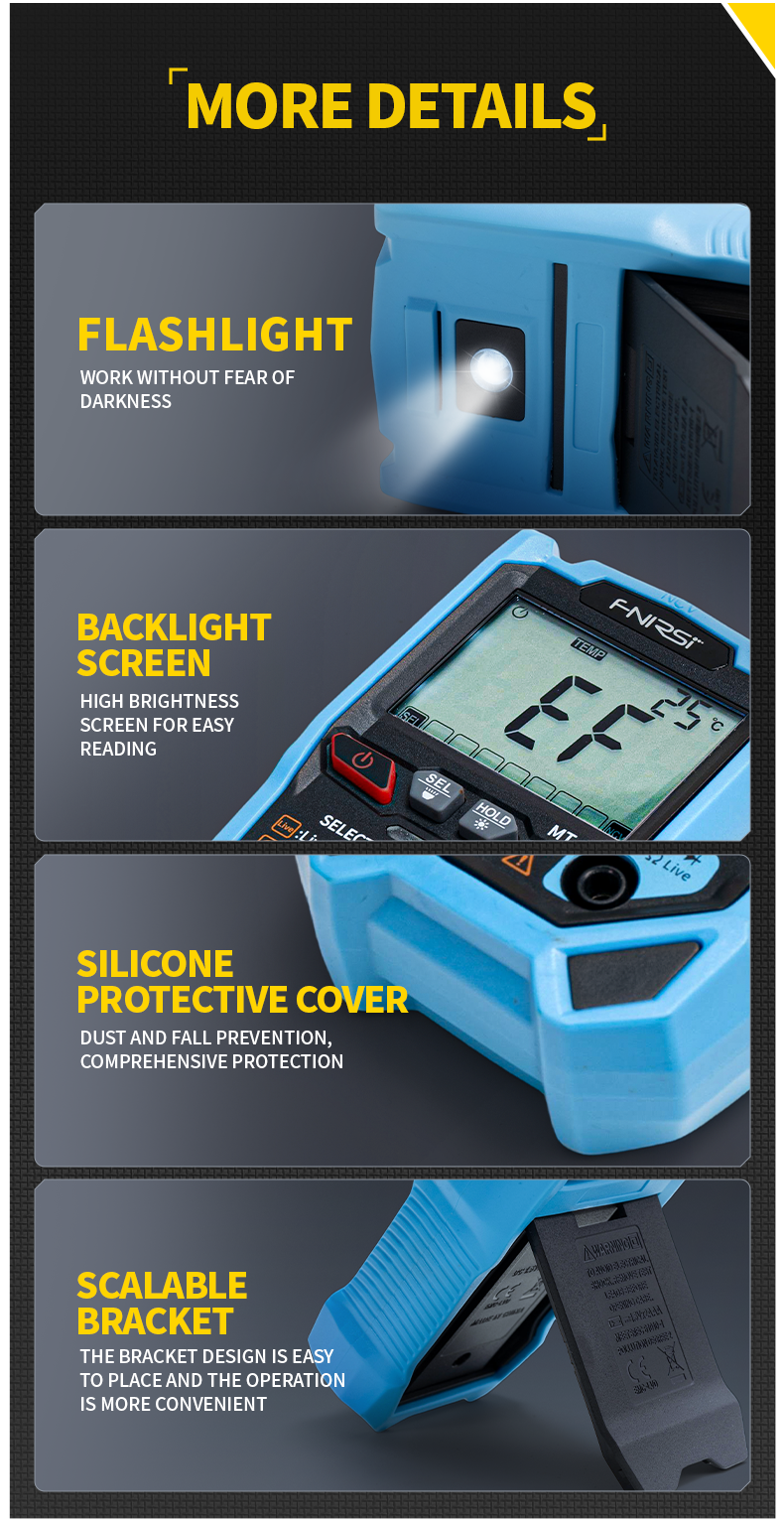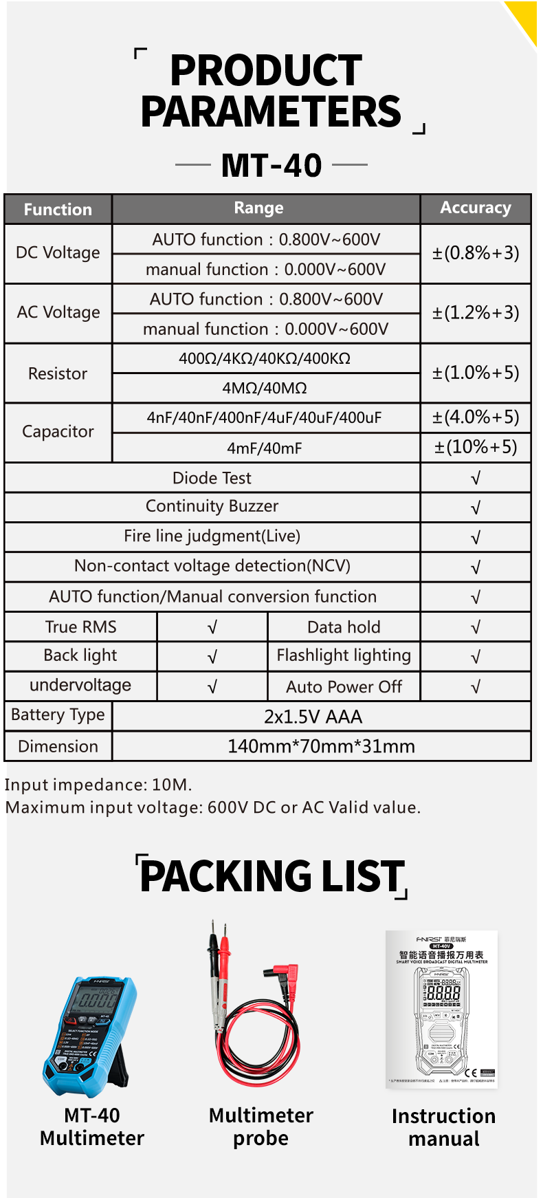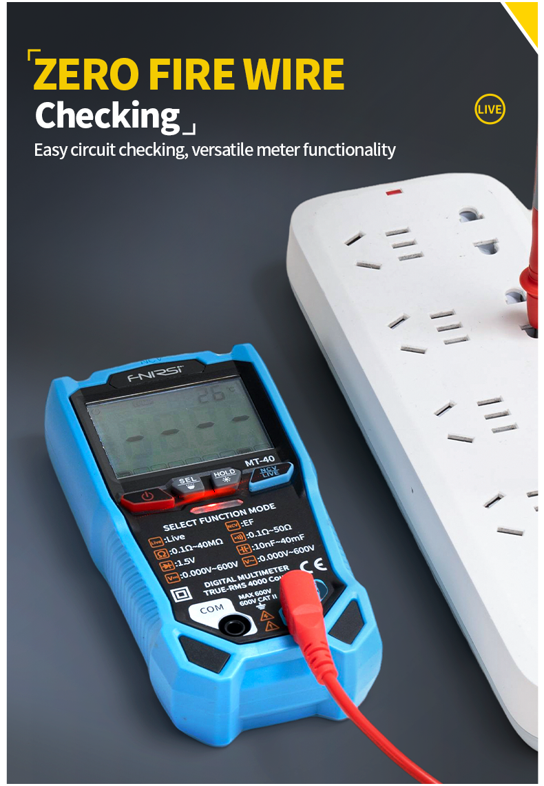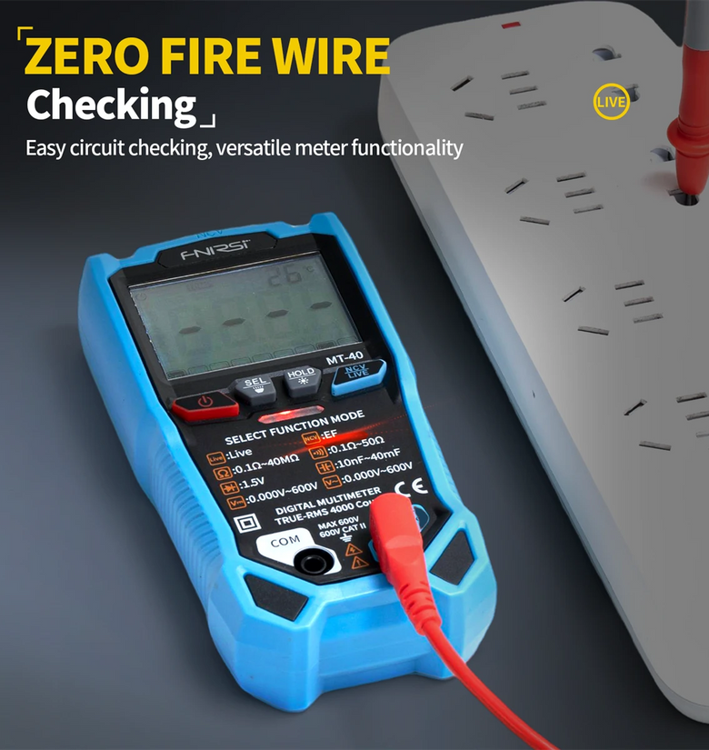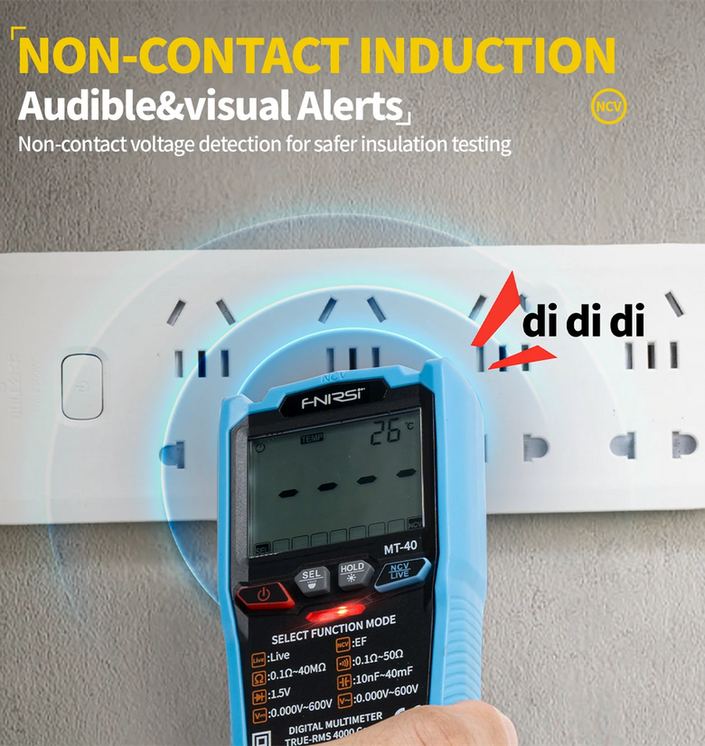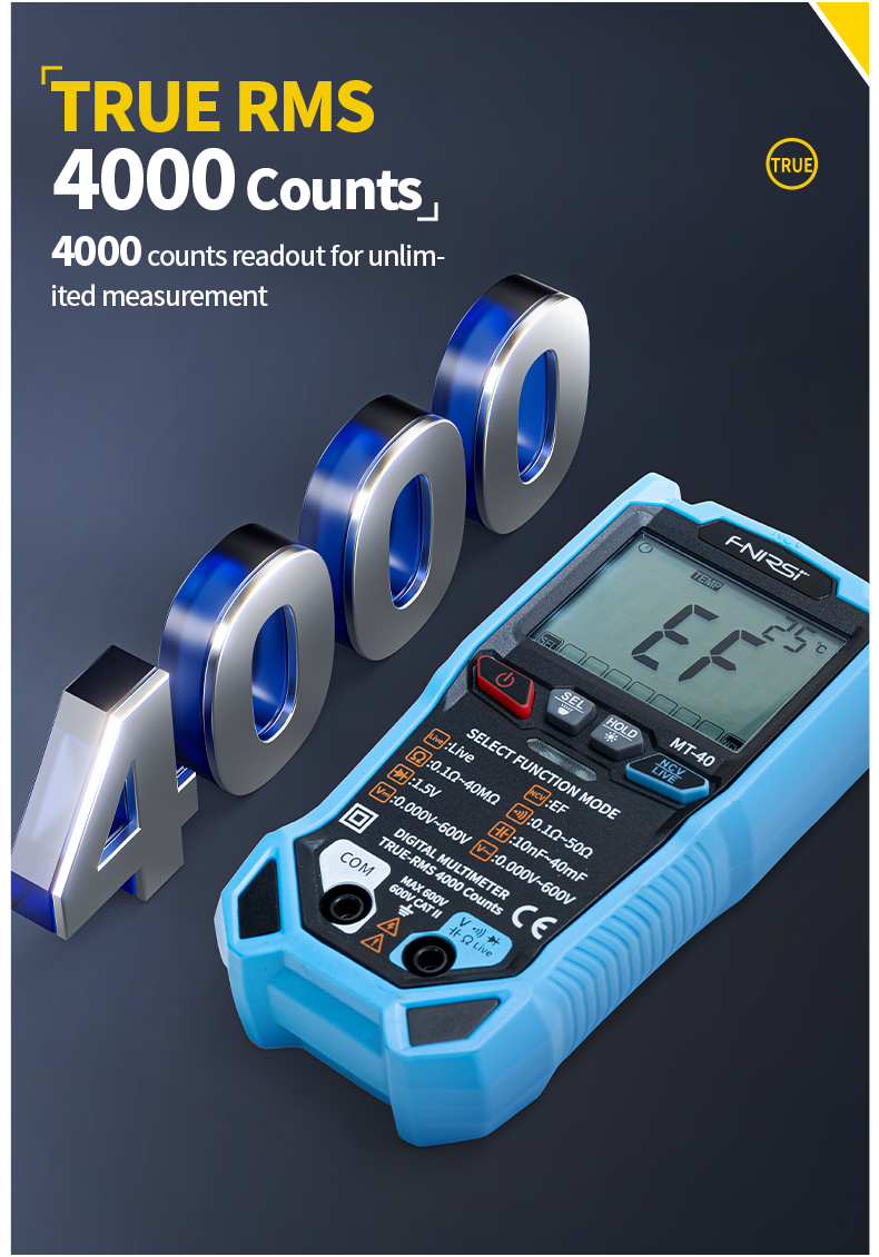• FNIRSI MT-40 Smart Digital Multimeter True RMS Auto Range 600V High Precision with Backlit LCD Diode Testing Overload Protection