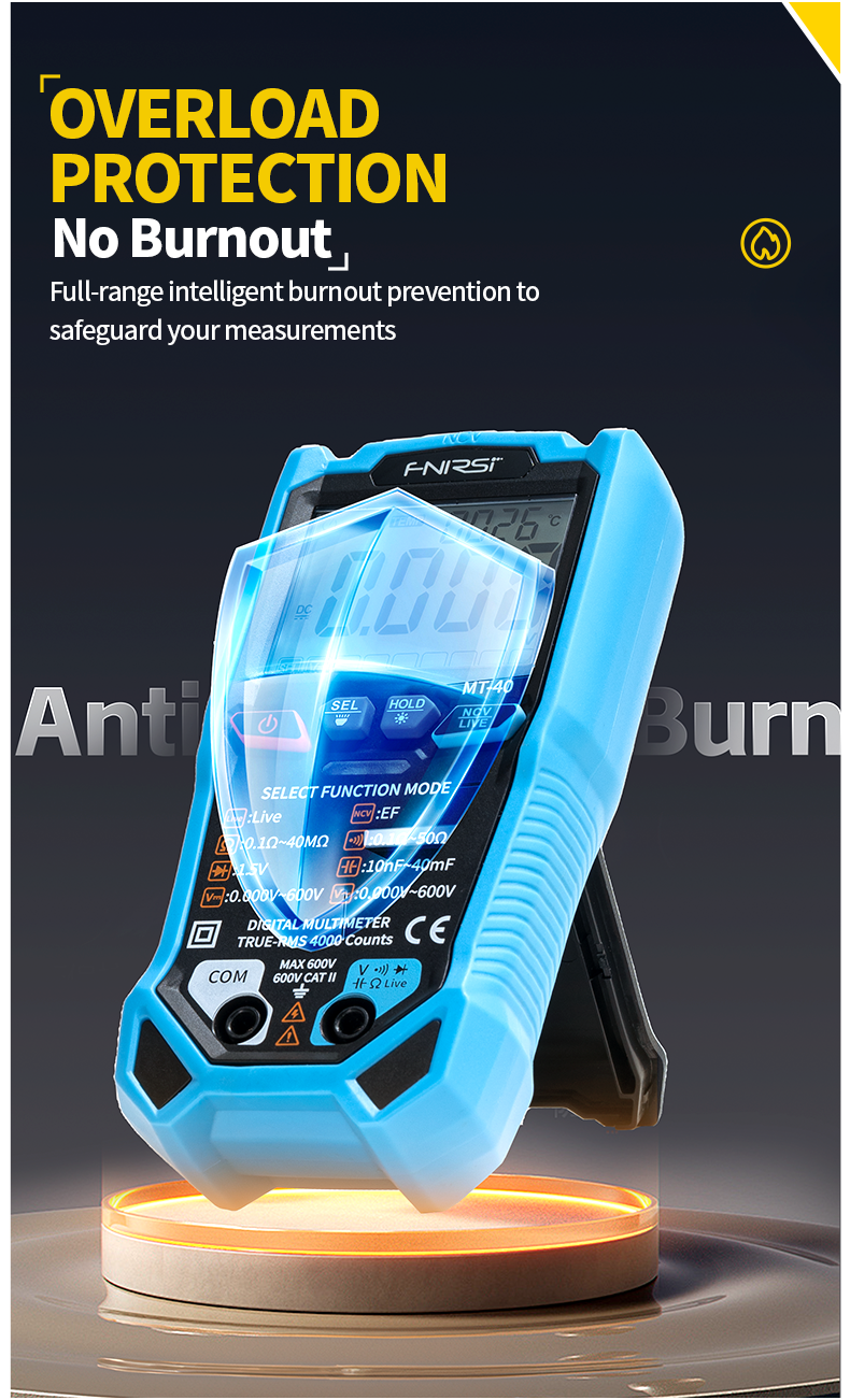 With its overload protection and intelligent anti-burning features, the MT-40 both your measurements and the device itself. The compact and lightweight design, combined with a convenient silicone protective cover, makes the MT-40 the ideal tool for on-the-go professionals.
