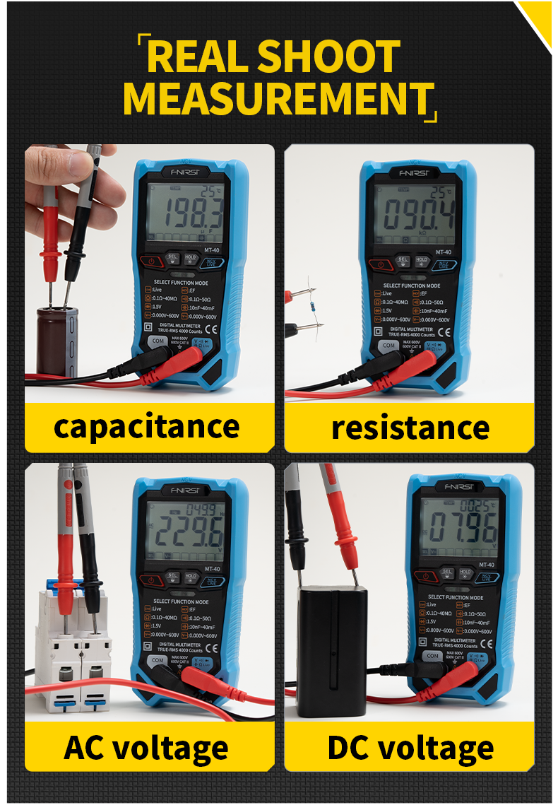 Powered by an advanced chip, the MT-40 boasts an ultra-fast sampling rate of 3 times per second, providing real-time data for precise analysis. This powerful device offers various functions, including True RMS measurement, capacitance, resistance, diode testing, and non-contact voltage detection.