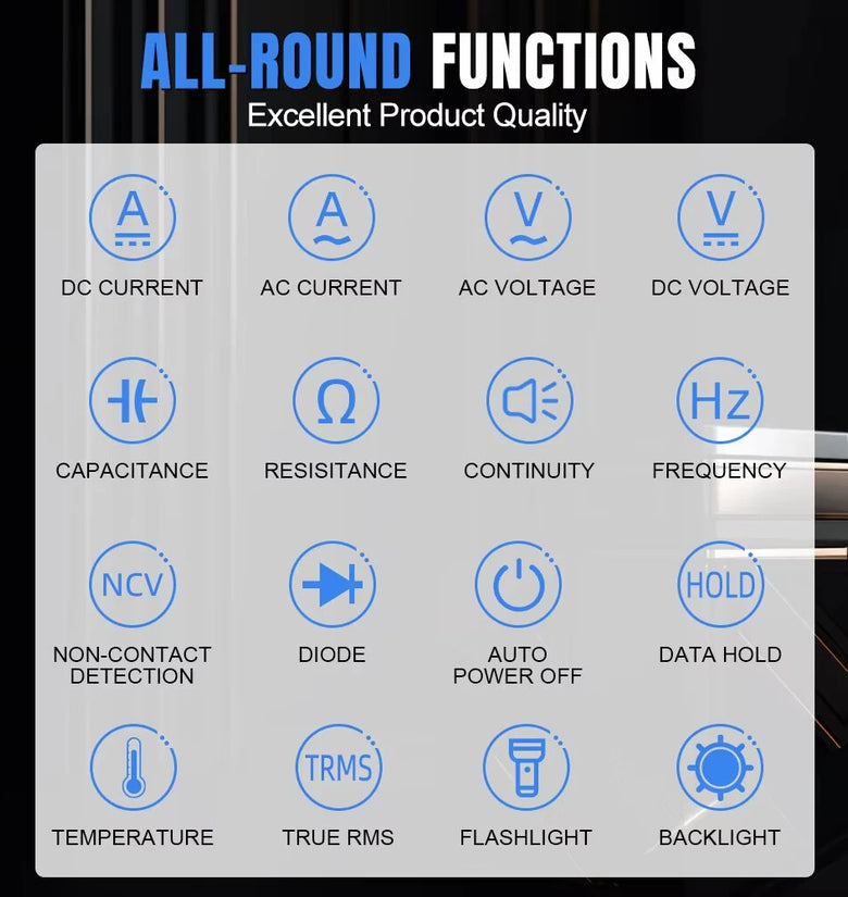 Provides precise readings for AC/DC current, voltage, resistance, and temperature, accommodating a broad range of electrical diagnostic needs with accuracy.