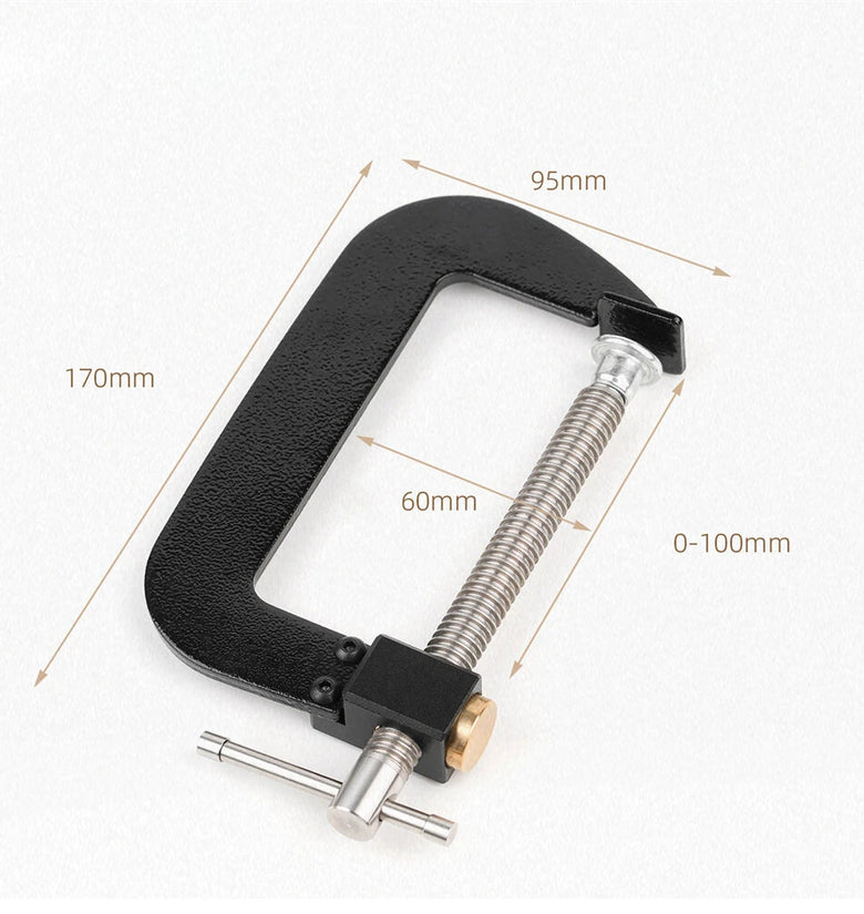 Designed with a large opening range of 0-100mm and a throat depth of 60mm, this clamp ensures secure and accurate grip for diverse applications. Perfect for woodworking, metalworking, or DIY projects.