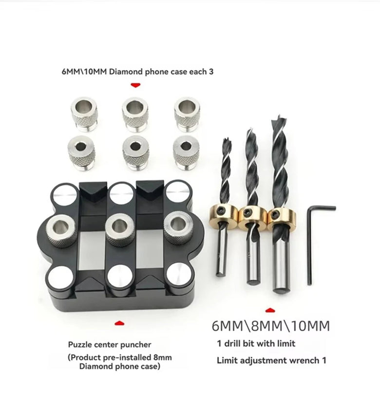 This woodworking drilling locator is an efficient tool designed specifically for furniture paneling, woodworking operations, and DIY projects. It has an automatic centering function, ensuring precise and error free drilling every time, especially suitable for making mortise and tenon structures and furniture splicing.