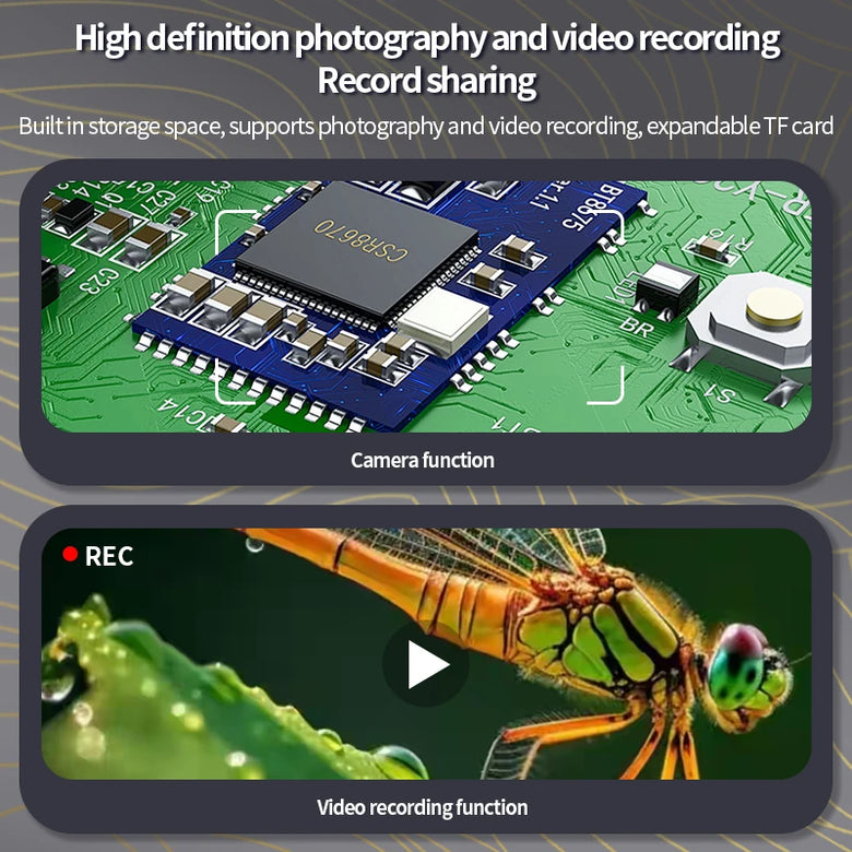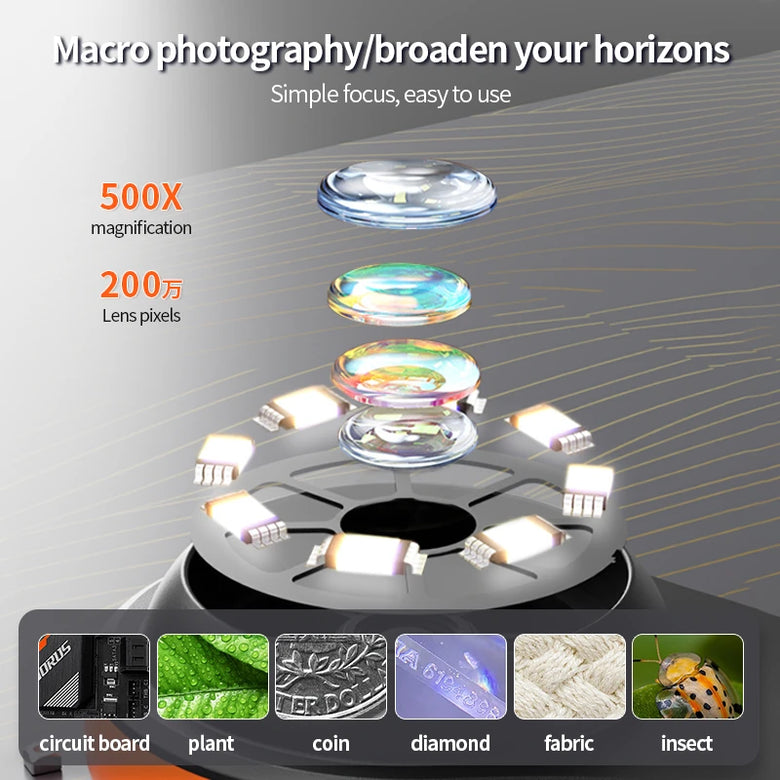 • Handheld Digital Microscope 2 Million Pixels 500X Magnification 2-inch IPS Screen 8 LED Lights USB Type-C Powered