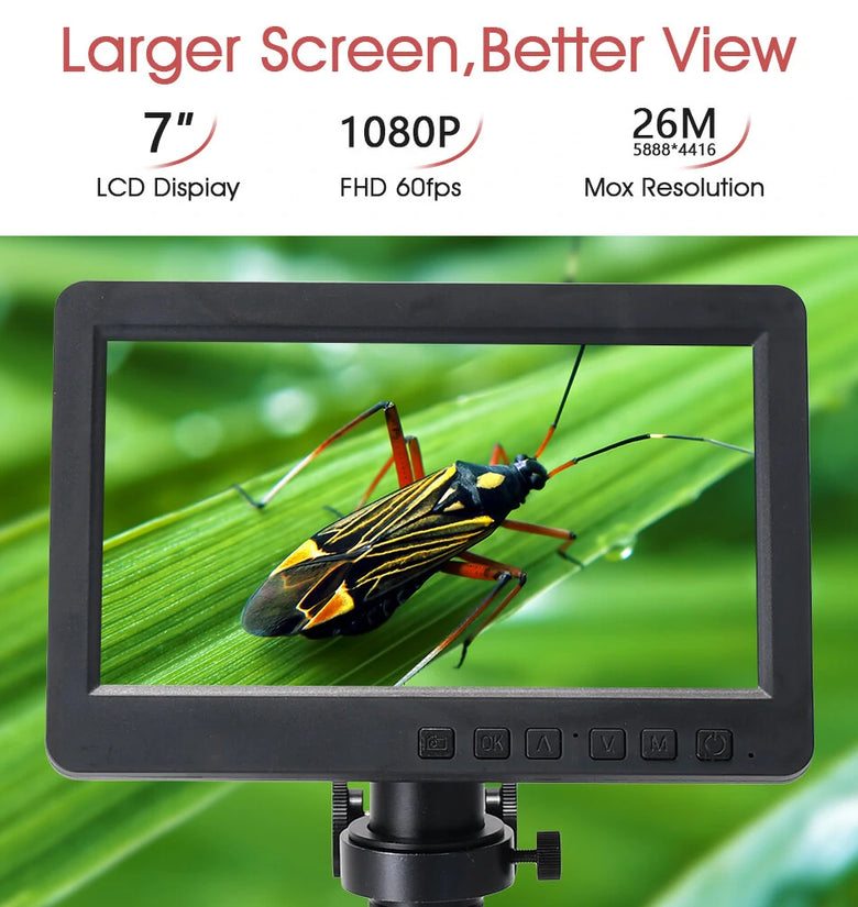 - Equipped with 26 million pixel CMOS image sensor, HDMI 1080P 60 frames per second high-definition image output, no delay and no smear (compared to other microscopes on the market, most of them are 30 frames)