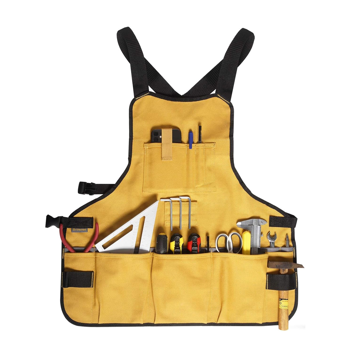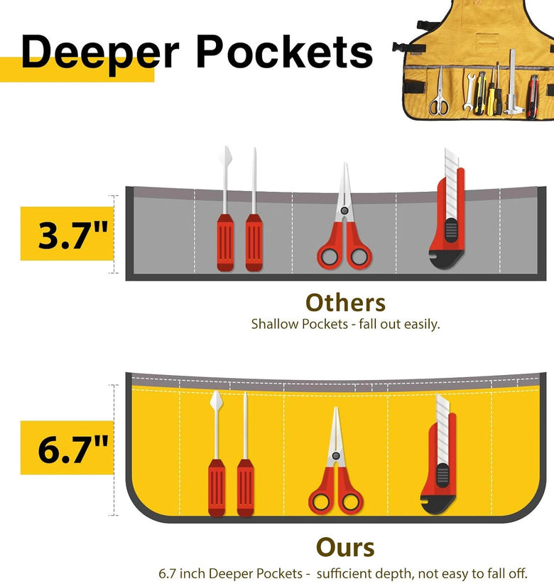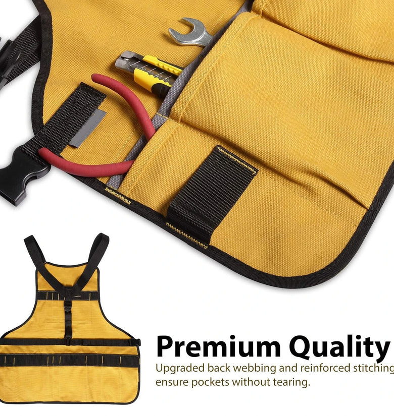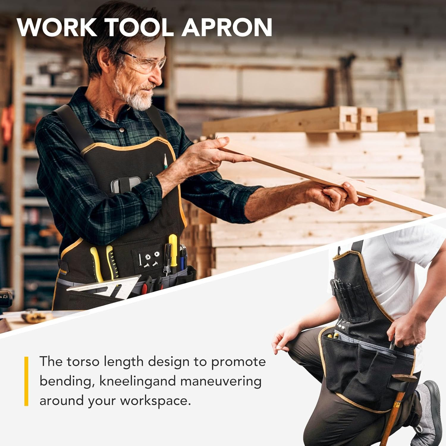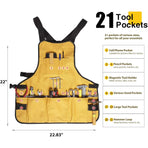 1.Ample Storage with 21 Pockets: This work apron includes 21 well-organized pockets in various sizes to fit your essential tools, such as screwdrivers, pliers, scissors—even crafting supplies. A practical companion for woodworkers, mechanics, and DIY enthusiasts.
