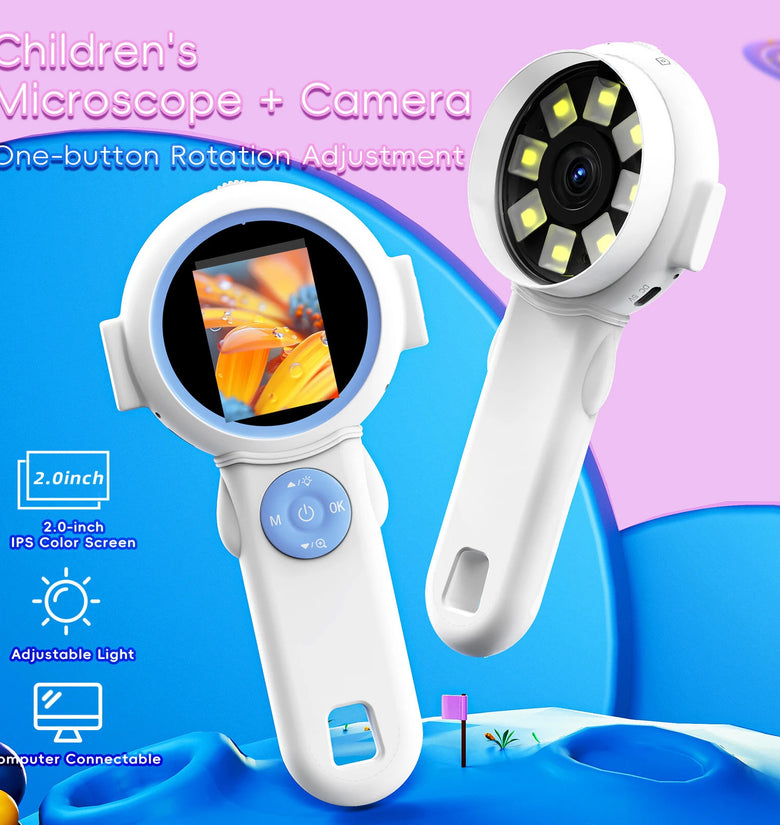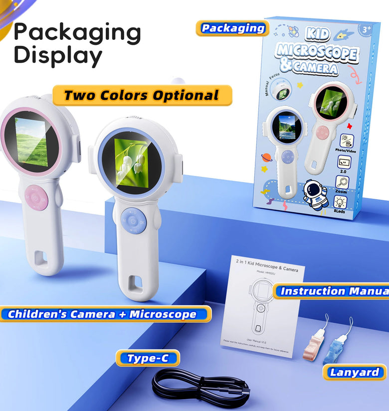 1) Dual Functionality: Combines a kid-friendly camera and microscope for both creative capturing and scientific exploration, sparking interest in photography and nature.