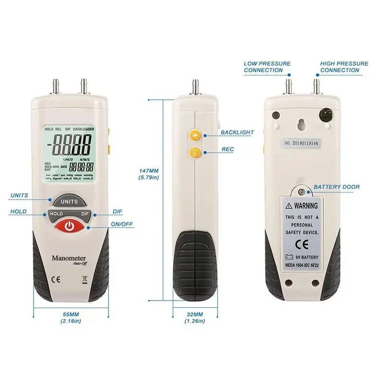 Measures both gauge and differential pressure from -55 H2O to +55 H2O, making it suitable for a wide range of applications, from HVAC systems to laboratory experiments.