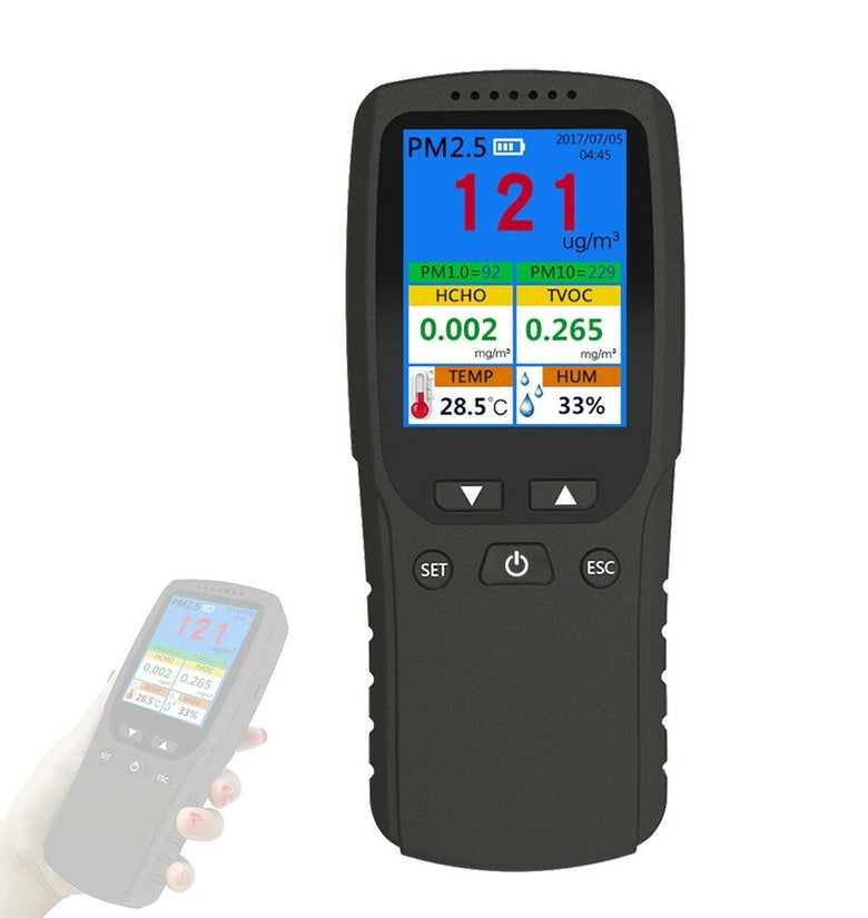 • Indoor Portable PM2.5 Detector Multifunctional Thermohygrometer Home LCD Digital Air Detector Intelligent Air Quality Analyzer Household Air Pollution Monitor