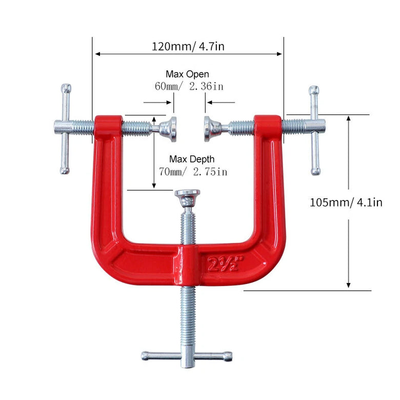 • Industrial G Clamp Three Way Clamping Spiral Advance Design Milled Cast Iron High Strength For Machine Processing Furniture Making Marble Glasswork