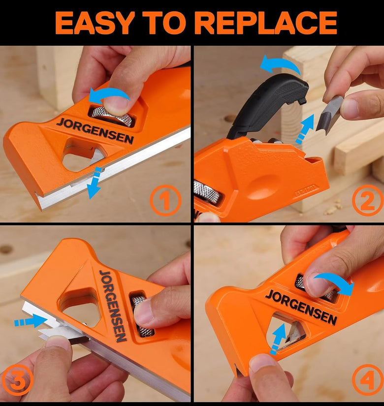 JORGENSEN Chamfer Plane Edge Corner Plane 4 Cutter Heads Woodworking Tool with Adjustable Depth 9CrWMn Blade with Storage