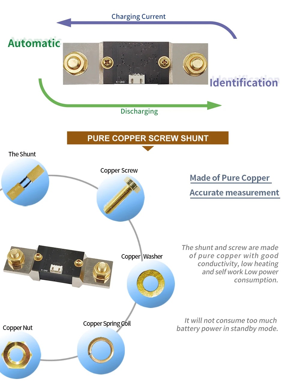 5. Both shunts and screws are made of pure copper materials to minimize power consumption in standby mode;