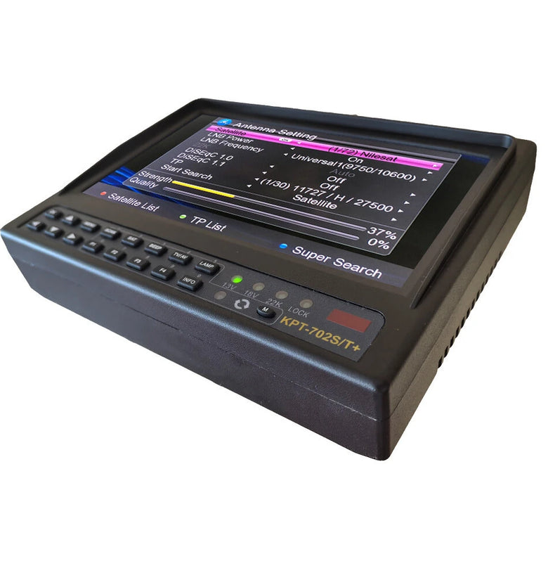 • KPT-702ST+AHD Spectrum Satellite Finder DVB-S2/T2/C 7-inch LCD Touchscreen Signal Strength Meter USB HDMI AV Rechargeable Battery