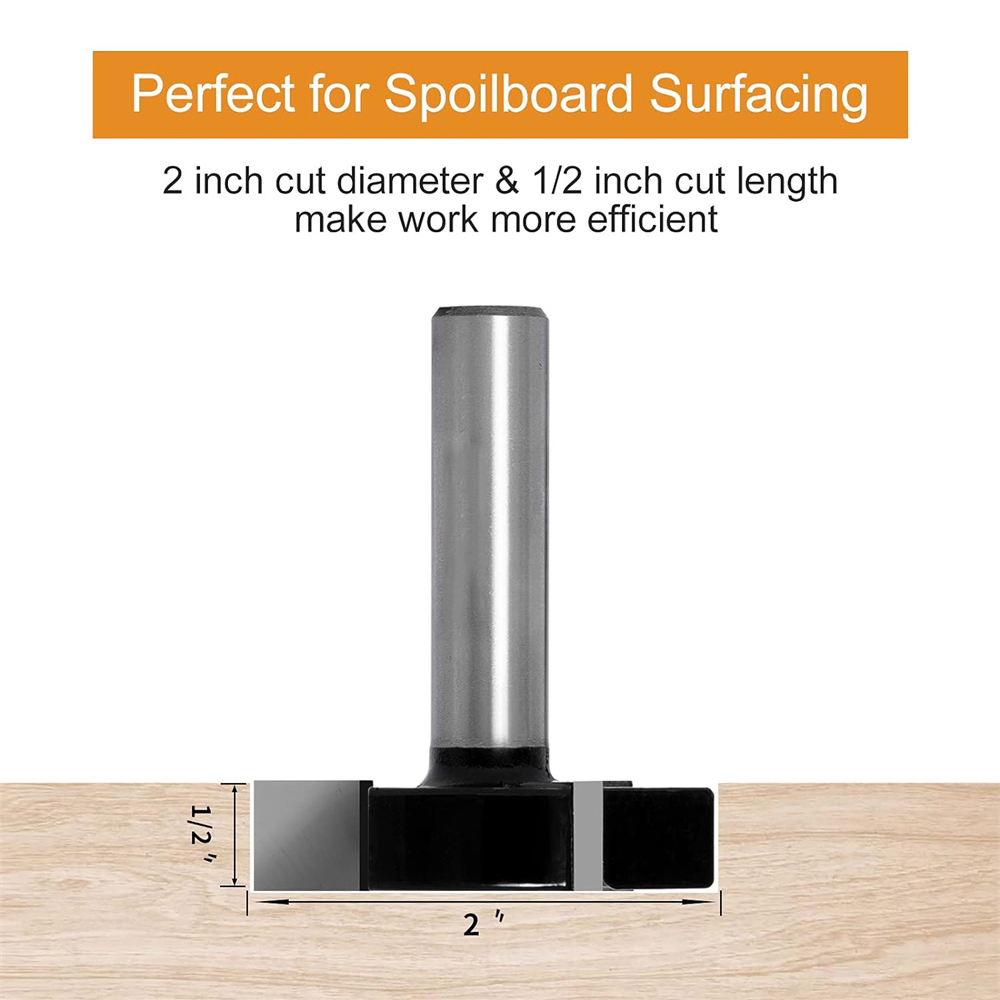 • LAVIE 12mm 1/2 Inch Shank 3 Flutes CNC Spoilboard Surfacing Router Bit Carbide Slab Flattening Router Bit Wood Milling Cutter Planer Tool with 1-15/16"/49mm Cutting Diameter