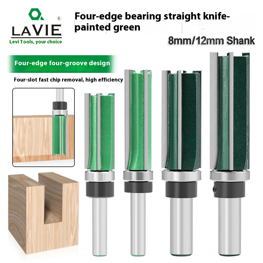 • LAVIE 2pcs 8mm 12mm Shank Straight Cut Router Bit Set Four Flute Tungsten Carbide Cutter Woodworking Tools for CNC Machines Dense Board Solid Wood Cutting