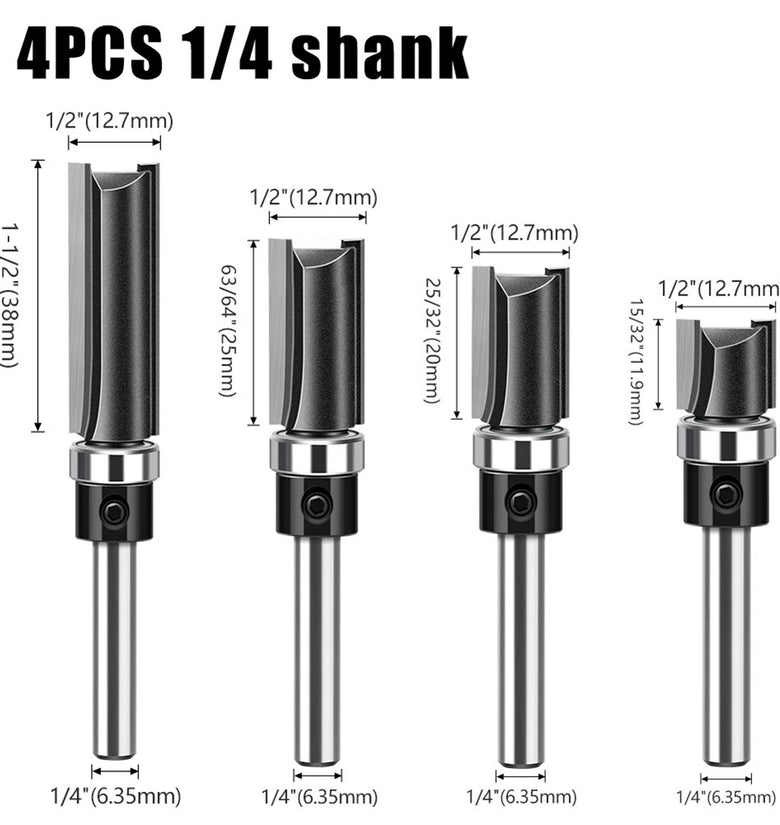 • LAVIE 4pcs 6mm 1/4 Inch Shank Straight Router Bit with Bottom Bearing 12.7mm Cutting Diameter Trimming Cutter Line Cutter Trimming Machine Milling Cutter Woodworking Tool