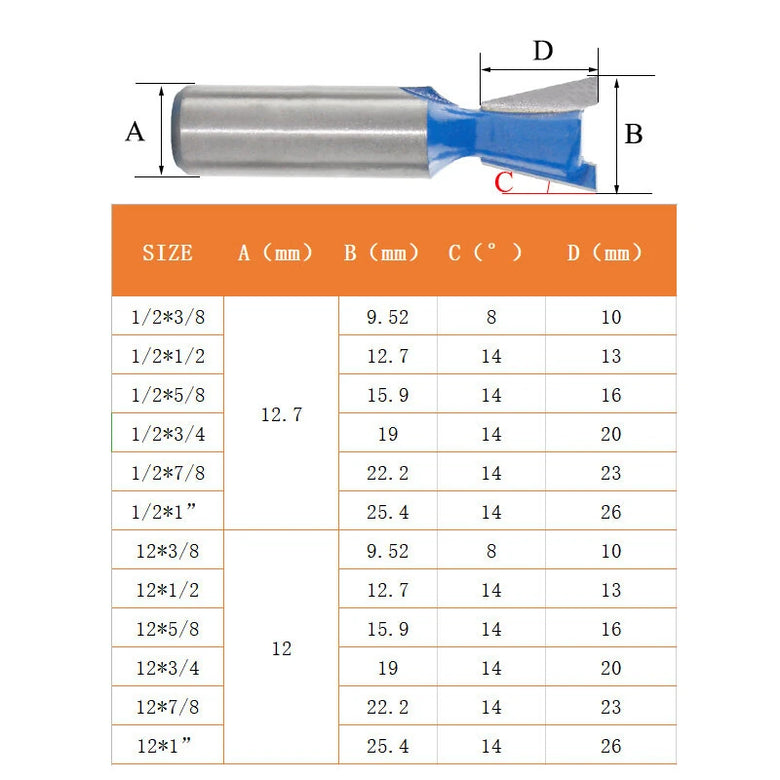 • LAVIE 6pcs 12mm 1/2" 1/4" Shank Dovetail Router Bits Set 14 Degree Joint Router Bit Woodworking Engraving Bit Milling Cutter for for Making Boxes Drawers Chests