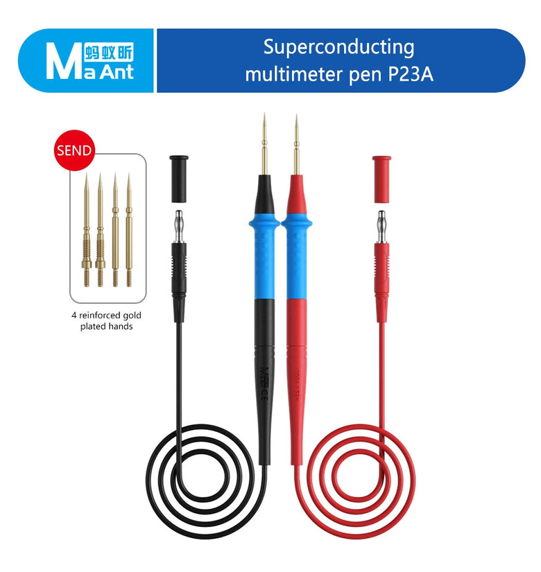 • MA ANT P23A Multimeter Test Lead Set 1000V 23A 316 Stainless Steel Silicone Wire Detachable Tips