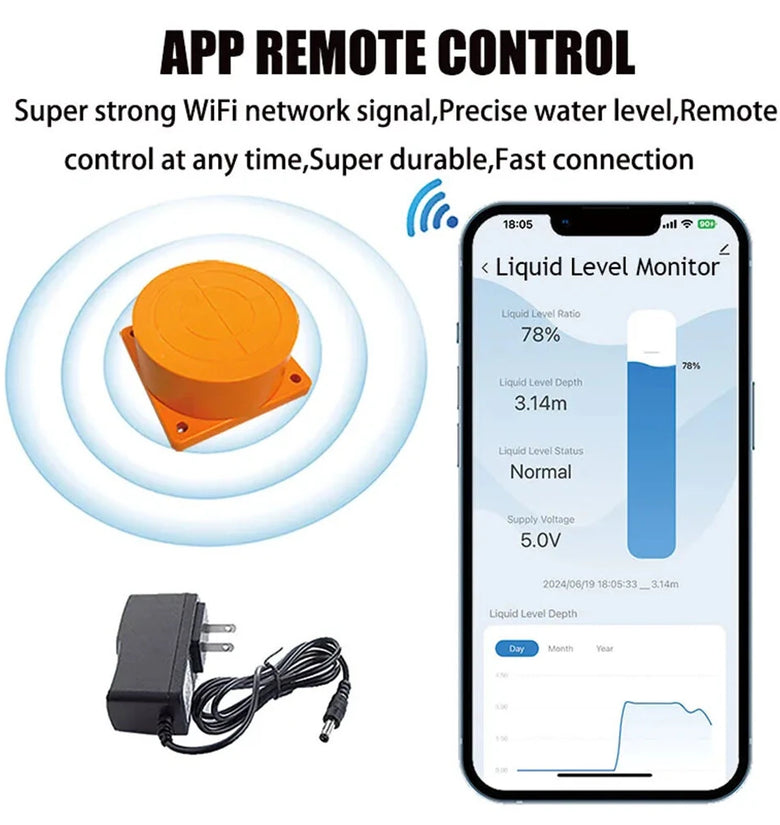 Remote Monitoring: View real-time tank levels using the Tuya APP, providing convenience and accuracy in managing water, fuel, diesel, and oil levels.