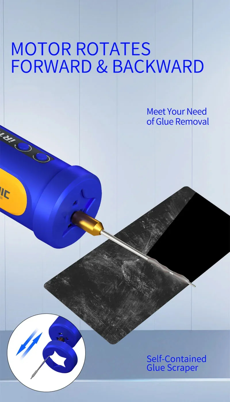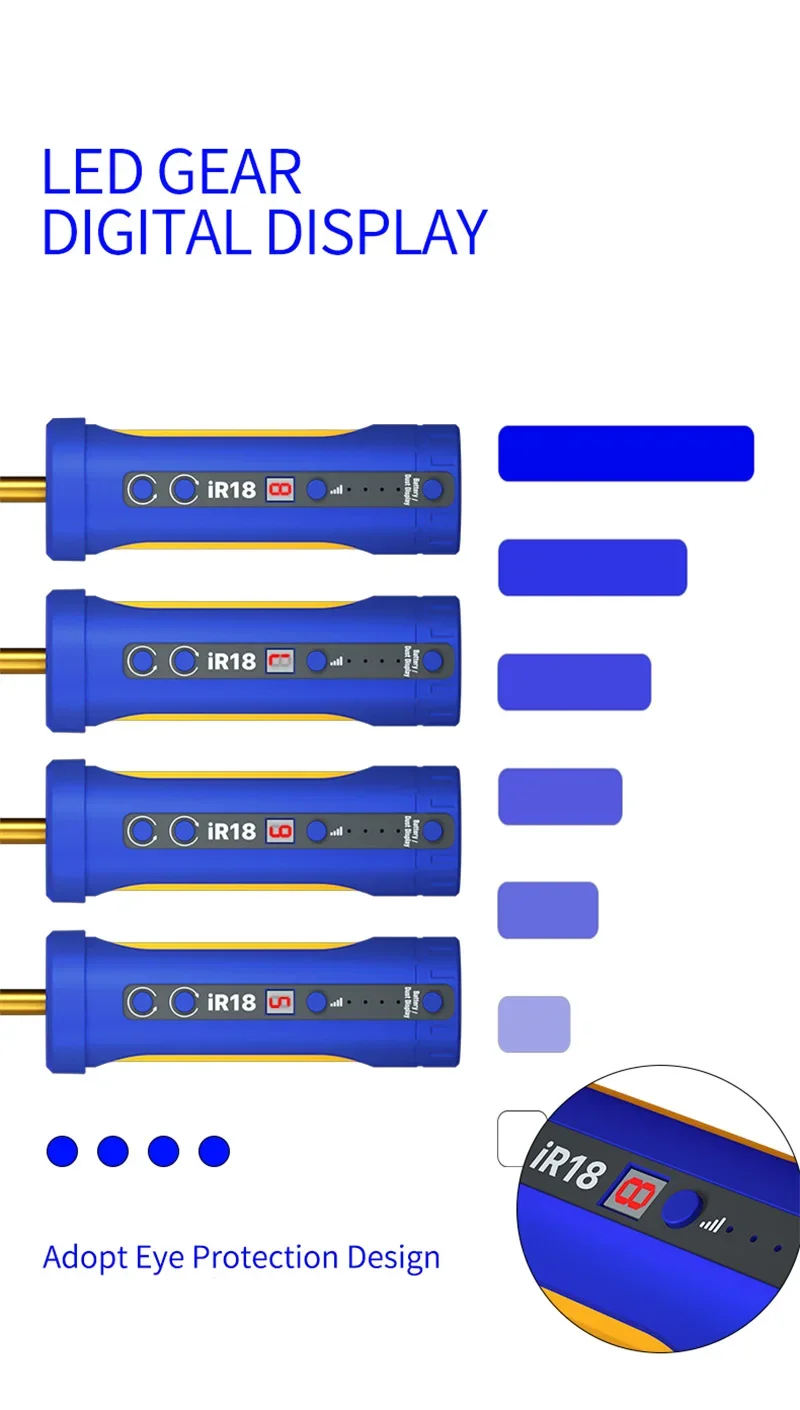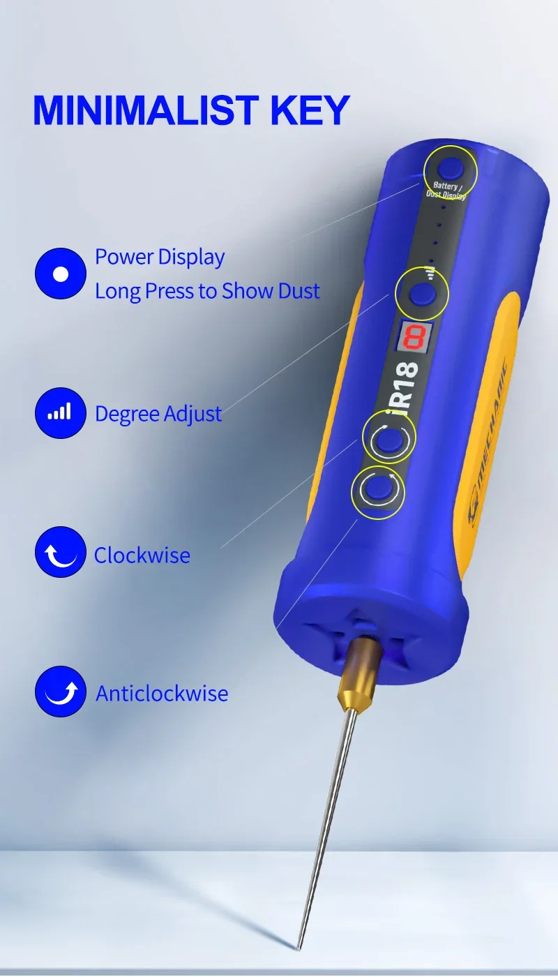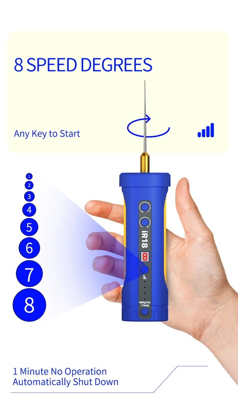 The IR18 allows precise speed adjustment across 8 levels, giving you control over rotational intensity to match different repair scenarios, including dust removal and glue extraction.