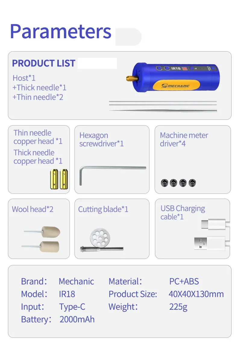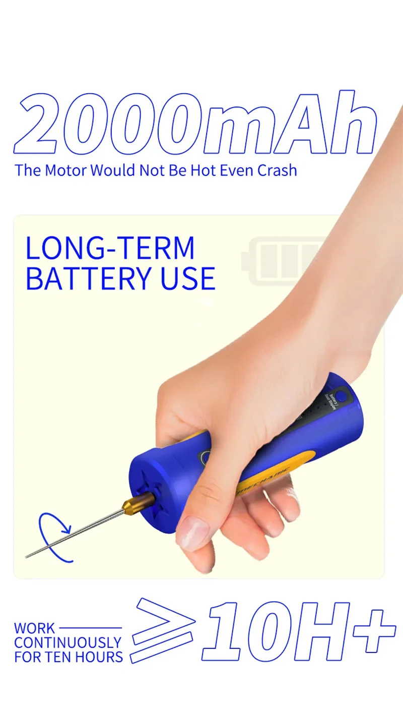 Equipped with a 2000mAh lithium battery, the IR18 provides uninterrupted operation for up to 10 hours, ensuring long-lasting usability for demanding repair tasks. Perfect for professionals and DIY users.